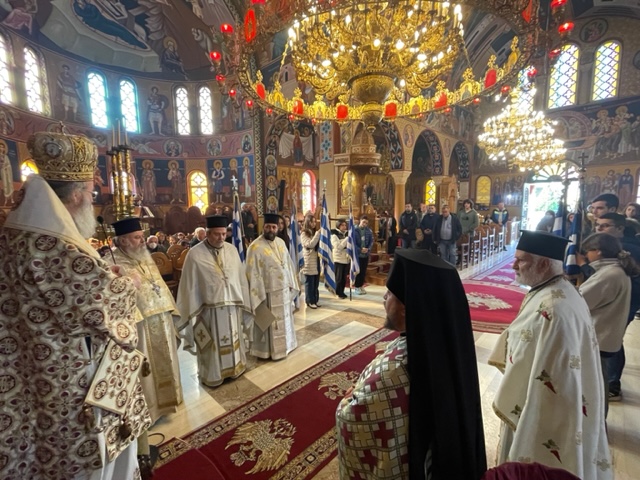 Στον Ι. Μητροπολιτικό μαςΝαό, Ευαγγελισμού της Θεοτόκου, εορτάστηκε η ιερά μνήμη των Τριών Ιεραρχών, (καθώς το αριστερό κλίτος του Ι. Ναού είναι αφιερωμένο εις την μνήμη τους) προεξάρχοντος του Σεβ. Μητροπολίτου μας κ. Αμφιλοχίου. Συμμετείχαν αντιπροσωπείες μαθητών εκ των Σχολικών Μονάδων της Κισάμου, συνοδευομένων από τους Διευθυντές/Διευθύντριες ως και ικανό διδακτικό προσωπικό των Σχολικών Μονάδων. Εκκλησιάστηκαν ο Δήμαρχος Κισάμου κ. Γεώργιος Μυλωνάκης, Αντιδήμαρχοι, Δημοτικοί και Περιφερειακοί Σύμβουλοι, συνταξιούχοι εκπαιδευτικοί και πολλοί γονείς των παιδιών. Αρκετά δε παιδιά κοινώνησαν των Αχράντων Μυστηρίων. Παιδιά του 2ου Δημοτικού Σχολείου Κισάμου έλαβαν τον λόγο και αναφέρθηκαν στο μήνυμα των Τριών Ιεραρχών, τα οποία και εντυπωσίασαν με τον λόγο τους και την όμορφη παρουσία τους. Στο Τσατσαρωνάκειο Πολιτιστικό Πολύκεντρο της Ι. Μητροπόλεως μας ακολούθησε εόρτια εκδήλωση, με την συμμετοχή όλων των μαθητών και του διδακτικού προσωπικού του ΕΠΑΛ Κισάμου.