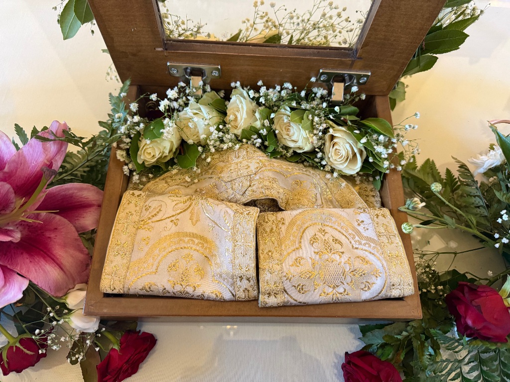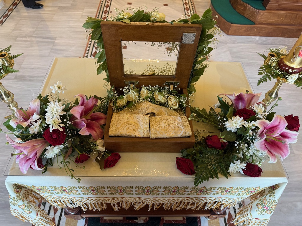 Κατά τον φετινό επετειακό εορτασμό οι προσκυνητές που προσήλθαν, από πολλά μέρη της Κρήτης, είχαν την ευλογία προσκύνησις ιερού Επιτραχηλίου του Οσίου Ευμενίου του νέου, πνευματικού τέκνου του Οσίου Νικηφόρου, το οποίο και φορούσε κατά τις Θείες Λειτουργίες που τελούσε. Τον πνευματικό αυτό θησαυρό κόμισε, κατόπιν παρακλητικού αιτήματος του Σεβ. Μητροπολίτου μας κ. Αμφιλοχίου προς τον Σεβ. Μητροπολίτη Γορτύνης και Αρκαδίας κ. Μακάριο, ο Εφημέριος της Ενορίας Εθιάς (τόπος καταγωγής του Οσίου Ευμενίου, όπου ευρίσκεται και ο τάφος του), Αιδ. π. Δημήτριος Κρουσταλάκης, συνοδευόμενος από ευλαβείς λαϊκούς της Ενορίας.  Το ιερό Επιτραχήλιο του Οσίου Ευμενίου τέθηκε προς προσκύνηση κατά την πανηγυρική Θεία Λειτουργία, προεξάρχοντος του Σεβ. Ποιμενάρχου μας κ. Αμφιλοχίου, ο οποίος στο τέλος της Θείας Λειτουργίας προχείρισε σε πνευματικό τον Παν. Αρχ. π. Χρύσανθο (Τσαχάκη), υπεύθυνο του ιερού προσκυνήματος.