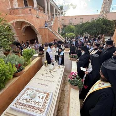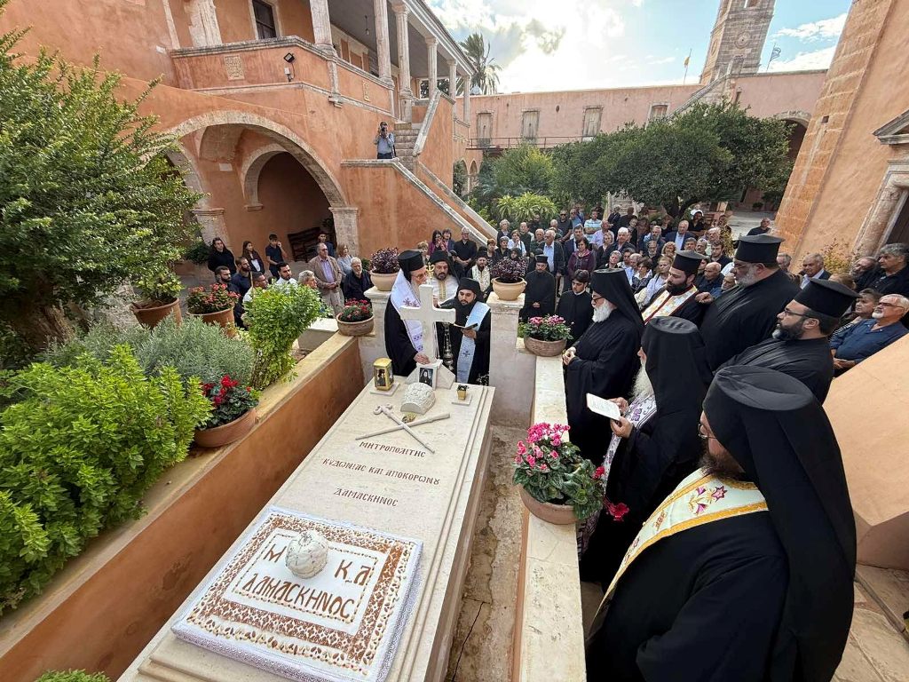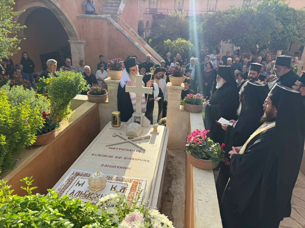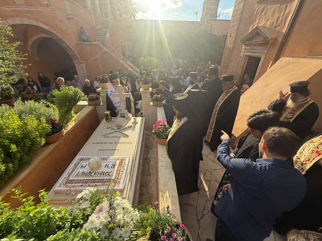 Με την συμμετοχή πλήθους πιστών τελέστηκε το εξάμηνο μνημόσυνο του αοιδίμου Μητροπολίτου Κυδωνίας και Αποκορώνου κυρού Δαμασκηνού. Ο Εσπερινός τελέστηκε στην Ιερά Πατριαρχική και Σταυροπηγιακή Μονή Αγίας Τριάδος, Τζαγκαρόλων. Του Εσπερινού ακολούθησε Τρισάγιο στο Καθολικό της Μονής ως και επί του τάφου του μακαριστού Ιεράρχου, ο οποίος βρίσκεται στον προαύλιο χώρο της Μονής, υπό του Σεβ. Μητροπολίτου Κισάμου και Σελίνου κ. Αμφιλοχίου, Τοποτηρητού της Ιεράς Μητροπόλεως Κυδωνίας και Αποκορώνου, με την συμμετοχή της Αδελφότητας της Μονής και Κληρικών εκ της Ιεράς Μητροπόλεως. Στον Ι. Ναό Αγίου Νεκταρίου Παχιανών τελέστηκε τρισαρχιερατική Θεία Λειτουργία, προεξάρχοντος του Σεβ. Μητροπολίτου Ιεραπύτνης και Σητείας κ.Κυρίλλου, συλλειτουργούντων των Σεβασμιωτάτων Μητροπολιτών Ρεθύμνης και Αυλοποτάμου κ.Προδρόμου και Κισάμου και Σελίνου κ. Αμφιλοχίου.