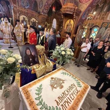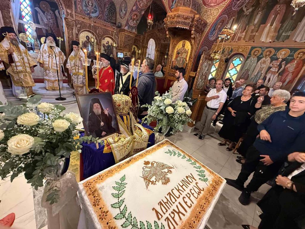 Αυτός ο τόπος, αυτή η κοινωνία θα πρέπει, επιτέλους, να απαλλαγεί από τις παθογένειες της, η δε άρνηση της αλήθειας ισοδυναμεί με συνενοχή», κατέληξε. Ακολούθως ο προεξάρχων της λατρευτικής Συνάξεως, Σεβ. Μητροπολίτης Ιεραπύτνης και Σητείας κ.Κύριλλος κατέθεσε την δική του εμπειρία, από την περυσινή ιερά πανήγυρι του Αγίου Νεκταρίου, όπου ήταν προσκεκλημένος και εκεί του απεκάλυψε ο Σεβ. Ποιμενάρχης κυρός Δαμασκηνός «του χρόνου τέτοια μέρα δεν θα ζω», συνεχίζοντας: «βίωνε τον θάνατο και όχι μόνο τον είχε ξεπεράσει αλλά γνώριζε και από πριν την εξέλιξη του. Όταν τον επισκέφθηκα στην Αθήνα του είπα ‘να γίνεις καλά να σε πάρουμε κάτω’ και εκείνος μου απάντησε ‘θα πάμε πάνω και εκεί θα συναντηθούμε, όταν θελήσει ο Κύριος.», κατέληξε. Ακολούθησε φιλοξενία εκ μέρους της Ενορίας σε όλους τους μετέχοντες.