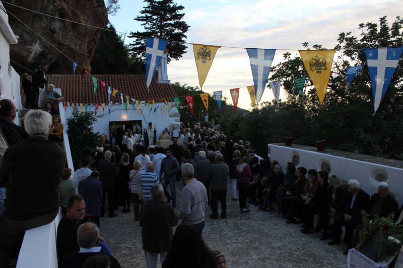 Πλήθος προσκυνητών κατακλύζει το μεγάλο αυτό προσκύνημα της Μητροπόλεως μας το εορταστικό διήμερο της Ιεράς των μνήμης, 6 & 7 Οκτωβρίου. Του Εσπερινού χοροστάτησε ο Επίσκοπος μας κ. Αμφιλόχιος, ο οποίος αναφερόμενος στις ιερές μορφές των Οσίων αυτών Πατέρων, σημείωσε μεταξύ άλλων: «Ο αγιασμένος και ευλογημένος αυτός τόπος ποτισμένος από την παρουσία, την άσκηση και τις ακοίμητες προσευχές των Οσίων 99 Θεοφόρων Πατέρων ομιλεί σήμερα στις ψυχές και τις καρδιές πάντων ημών. Αισθανόμεθα την παρουσία του Οσίου Ιωάννου του Ερημίτου και των συν αυτώ και ως δρόσος αερμών δροσίζουν την ψυχή μας. Οι Όσιοι και Θεοφόροι Πατέρες αν και έζησαν σε τόπο απαράκλητο, δύσβατο και κακοτράχαλο ένιωθαν ατελεύτητη χαρά, ομορφιά και πλούτο στην ζωή τους, καθώς κοινωνούσαν καθημερινά με την αληθινή πηγή χαράς και ζωής που είναι ο Χριστός και η Αγία μας Εκκλησία. Δείτε, συνέχισε ο Επίσκοπος μας, τι γίνεται σήμερα. Γεμίσαμε τα σπίτια και τις αποθήκες μας με ύλη, πλούτο φιλοδοξίας και κενοδοξίας και χάσαμε την ομορφιά, την χαρά και την αξία της ζωής. Νιώσαμε και νιώθομε άδειοι και κενοί, ξέρετε γιατί; Όχι επειδή μειώθηκαν τα εισοδήματα μας, αλλά γιατί λησμονήσαμε πως η μεγαλύτερη φτώχια της ζωής είναι η έλλειψη της αγάπης, ενώ ο μεγαλύτερος πλούτος είναι η ομορφιά της αγάπης», κατέληξε ευχόμενος αυτό τον πλούτο να αποκτήσομε και να γεμίσομε και πάλι την ζωή και καθημερινότητα μας.