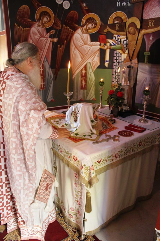 Κατά την εορτή της Αγίας Μαρίας Μαγδαληνής (παλαιό Ημερολόγιο) ο Πανοσιολογιώτατος Καθηγούμενος της Ιεράς Μεγίστης Μονής Βατοπαιδίου κ. Εφραίμ ιερούργησε στο παρεκκλήσιο του Επισκοπικού Οίκου της Μητροπόλεως μας, στον Άγιο Οικουμένιο, που ευρίσκεται στον προαύλιο χώρο των Ιδρυμάτων της Μητροπόλεως. Μετά την Θεία Λειτουργία επισκέφθηκε για προσκύνημα την Ιερά Μονή Παναγίας Χρυσοσαλιτίσης, ανδρώα κοινοβιακή Μονή της Μητροπόλεως μας, όπου τον υποδέχθηκε ο Ηγούμενος αυτής Παν. Αρχιμανδρίτης κ. Αγαθάγγελος Κουμαρτζάκης.