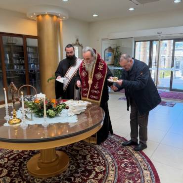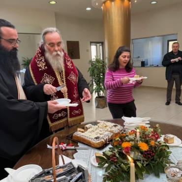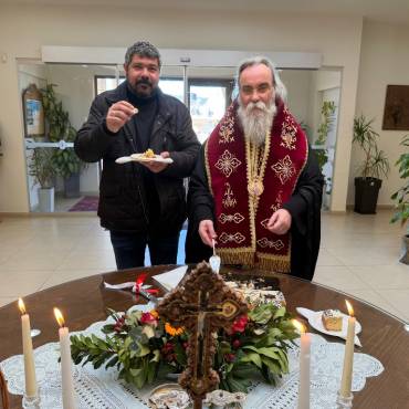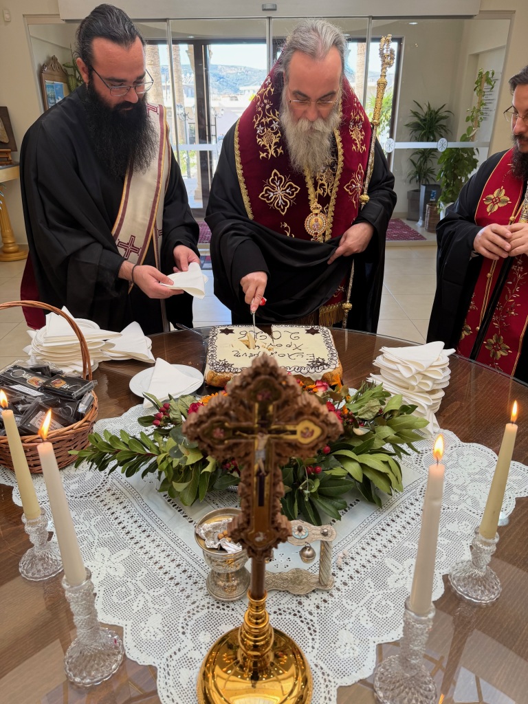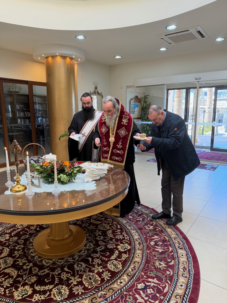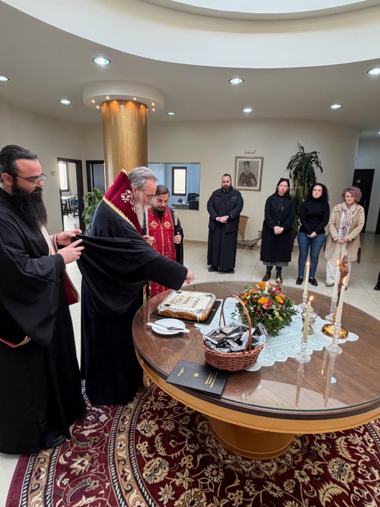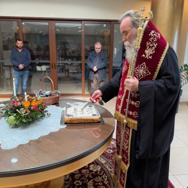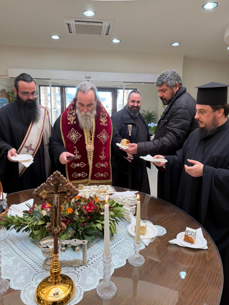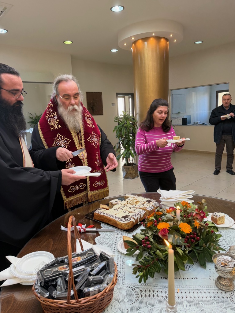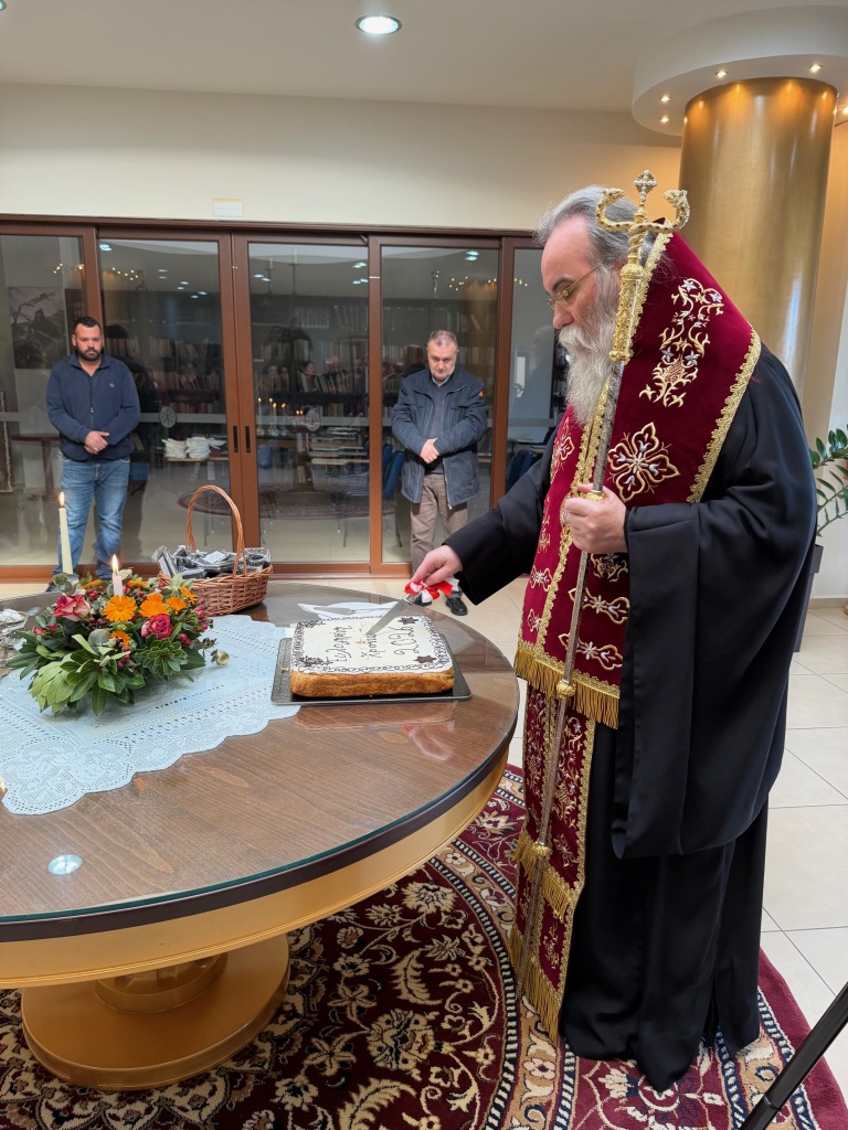 Στο φουαγιέ του Τσατσαρωνάκειου Πολιτιστικού Πολύκεντρου της Ι. Μητροπόλεώς μας, ο Σεβ. Ποιμενάρχης μας κ. Αμφιλόχιος ευλόγησε την Αγιοβασιλόπιτα των γραφείων της Ιεράς Μητροπόλεως μας ως και των συνεργατών, εργαζομένων στο Φαλδάμειο Οίκημα, Τσατσαρωνάκειο Πολύκεντρο, Οικοτροφεία της Ιεράς Μητροπόλεως μας, με την συμμετοχή και του Διοικητικού Διευθυντή του Αννουσάκειου Ιδρύματος, Αιδ. Πρωτ. π. Αντωνίου Αρετάκη, μέρους του προσωπικού του Ιδρύματος, (εκ του προσωπικού που δεν ήταν υπηρεσία), ως και του Πολιτικού Μηχανικού κ. Ανδρέαδη Απόστολου, άμισθου-εθελοντή συνεργάτη και συμβούλου της Μητροπόλεως.