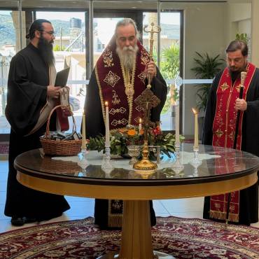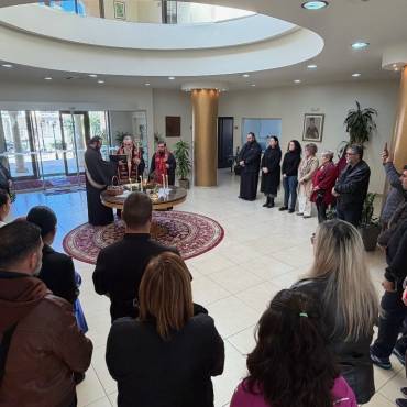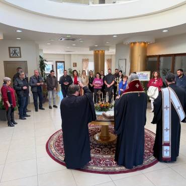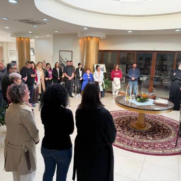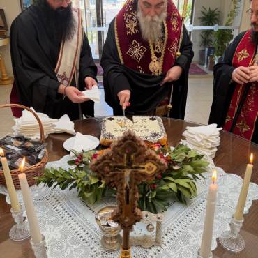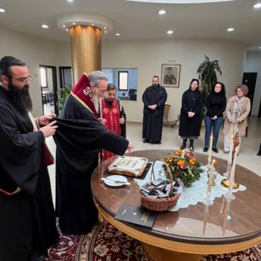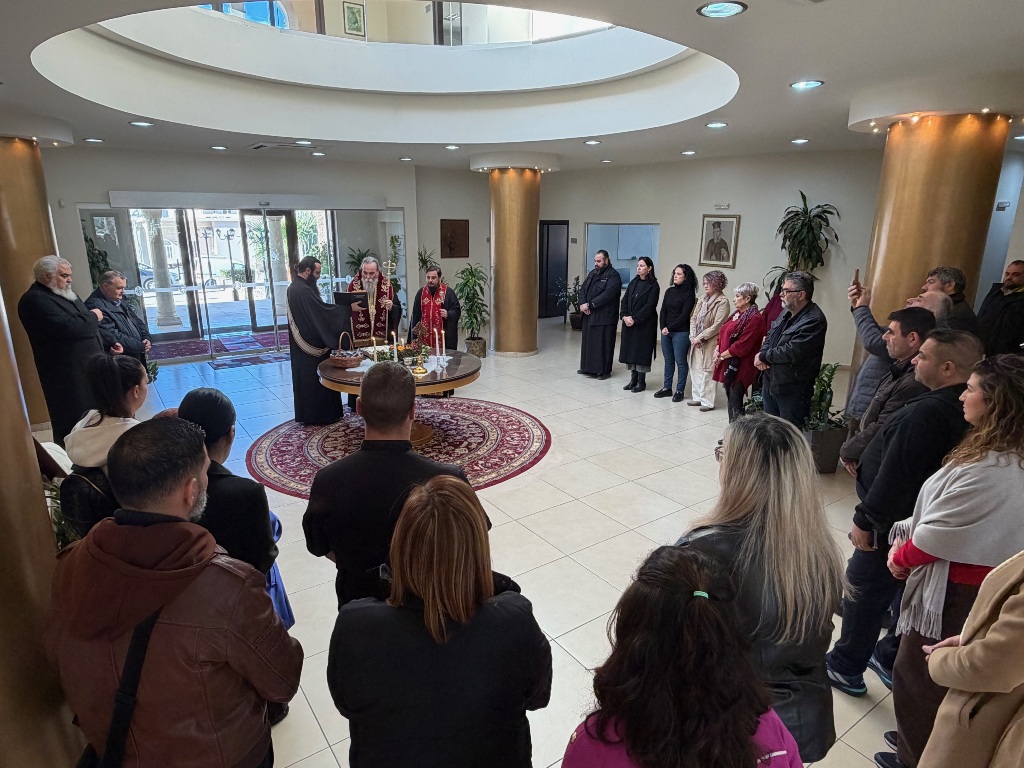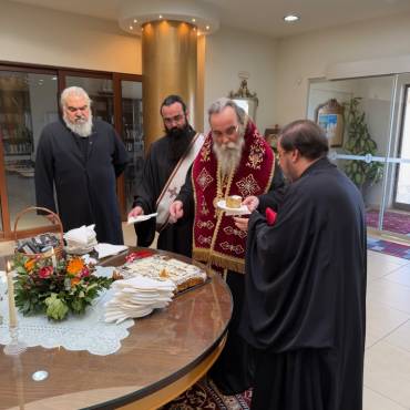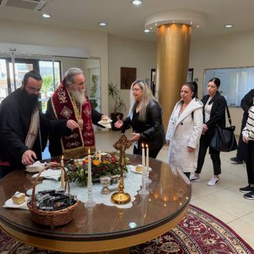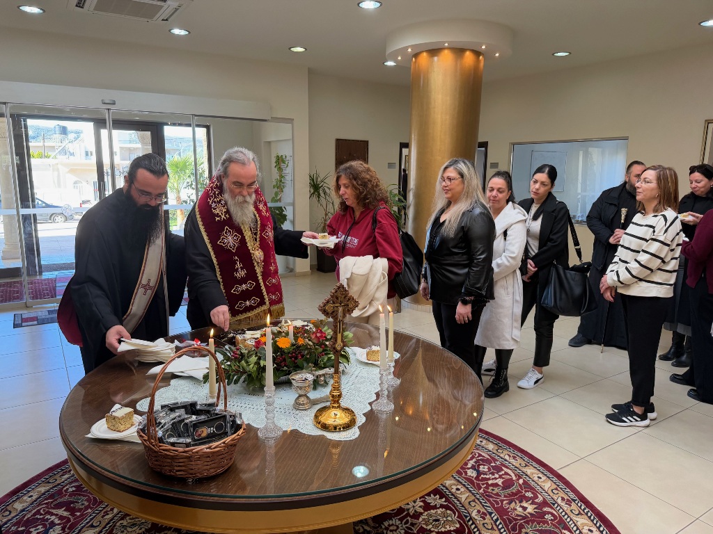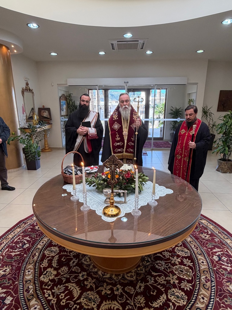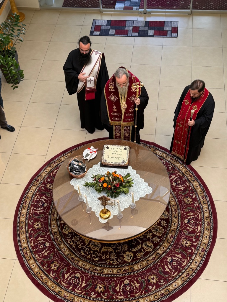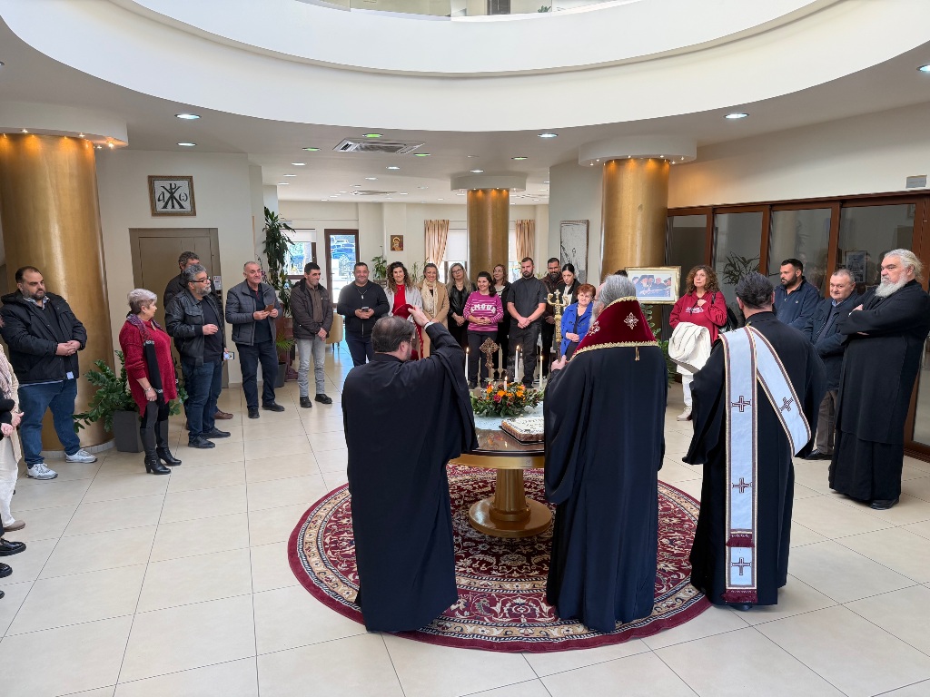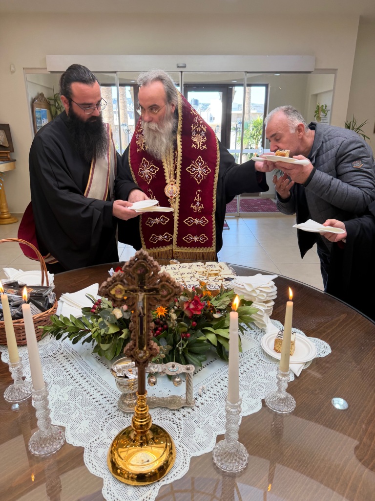 Στο φουαγιέ του Τσατσαρωνάκειου Πολιτιστικού Πολύκεντρου της Ι. Μητροπόλεώς μας, ο Σεβ. Ποιμενάρχης μας κ. Αμφιλόχιος ευλόγησε την Αγιοβασιλόπιτα των γραφείων της Ιεράς Μητροπόλεως μας ως και των συνεργατών, εργαζομένων στο Φαλδάμειο Οίκημα, Τσατσαρωνάκειο Πολύκεντρο, Οικοτροφεία της Ιεράς Μητροπόλεως μας, με την συμμετοχή και του Διοικητικού Διευθυντή του Αννουσάκειου Ιδρύματος, Αιδ. Πρωτ. π. Αντωνίου Αρετάκη, μέρους του προσωπικού του Ιδρύματος, (εκ του προσωπικού που δεν ήταν υπηρεσία), ως και του Πολιτικού Μηχανικού κ. Ανδρέαδη Απόστολου, άμισθου-εθελοντή συνεργάτη και συμβούλου της Μητροπόλεως.