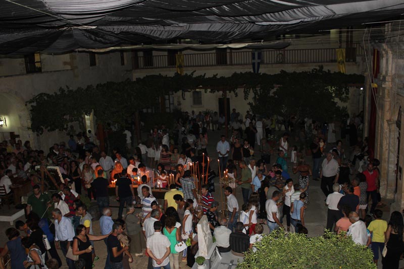 Ο Σεβ. Μητροπολίτης μας κ. Αμφιλόχιος ιερούργησε, το πρωί της παραμονής, στην Ανδρώα Ιερά Κοινοβιακή Μονή Χρυσοσκαλιτίσσης, η οποία είναι αφιερωμένη στην Κοίμηση της Θεοτόκου, τον δε εόρτιο Εσπερινό και την Θεία Λειτουργία της κυριωνύμου ημέρας τέλεσε στην, επίσης εορτάζουσα, Ιερά Πατριαρχική Μονή Οδηγητρίας Γωνιάς, στο Κολυμπάρι.