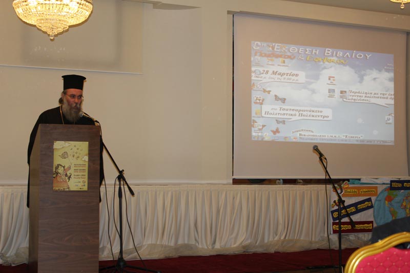 Περισσότερα από χίλια παιδιά, μαθητές Νηπιαγωγείων, Δημοτικών, Γυμνασίων και Λυκείων της ευρύτερης περιοχής επισκέπτονται τις ημέρες αυτές τους χώρους του «Τσατσαρωνάκειου» Πολύκεντρου της Ιεράς Μητροπόλεως μας όπου πραγματοποιείται η 3η Έκθεση Παιδικού και Εφηβικού Βιβλίου που οργανώνει η Μητρόπολις μας, σε συνεργασία με Συλλόγους Γονέων και Κηδεμόνων της περιοχής.