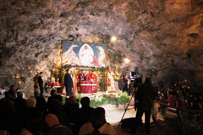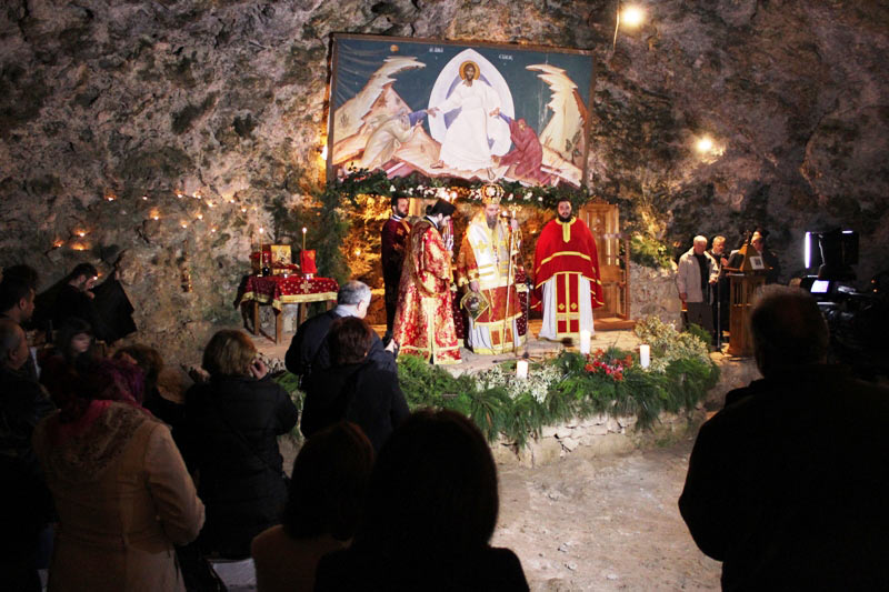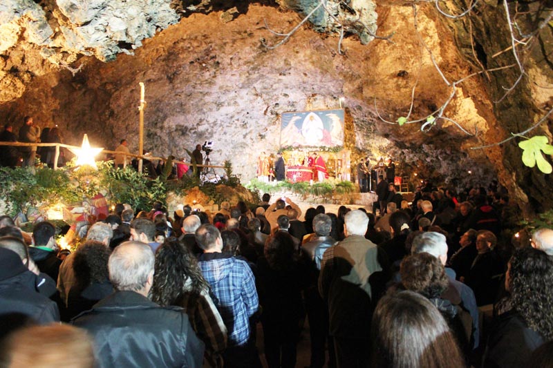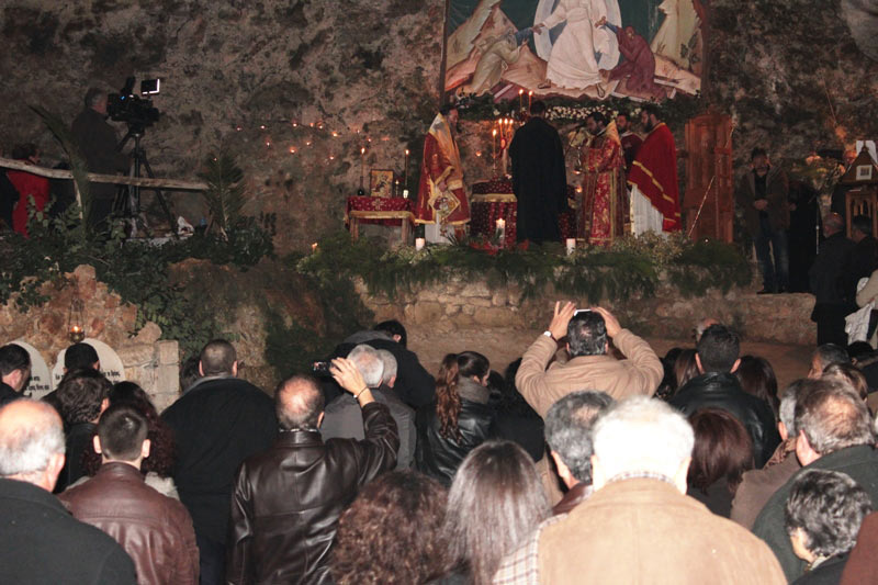 Χριστουγεννιάτικη Θεία Λειτουργία στο σπήλαιο της Μαραθοκεφάλας 24/12/2013