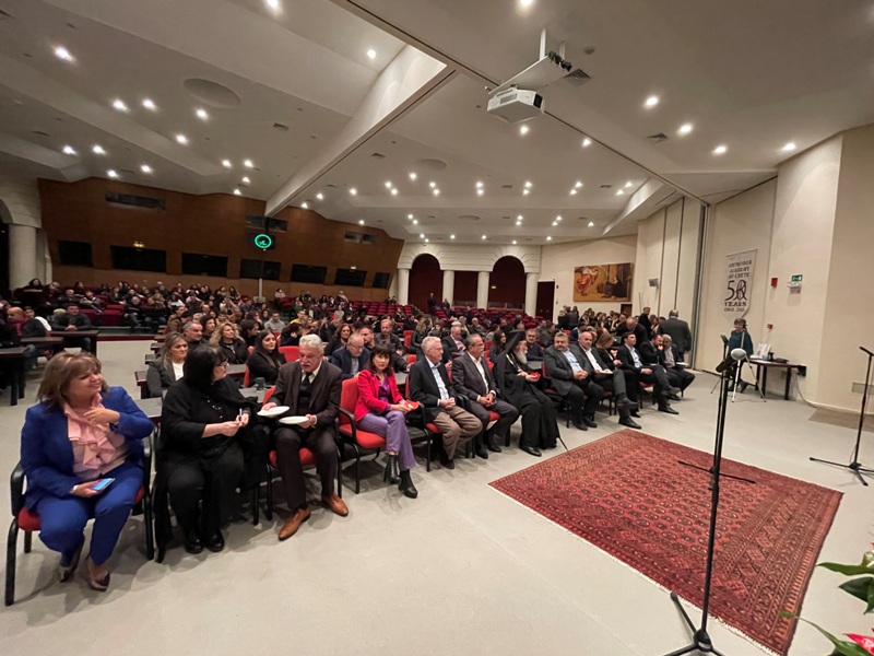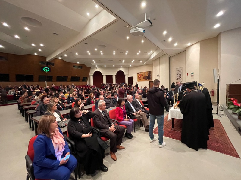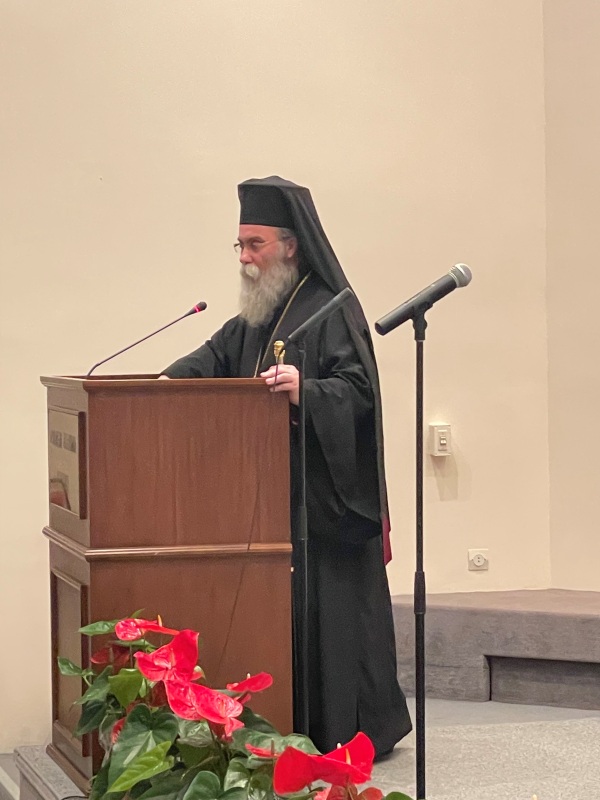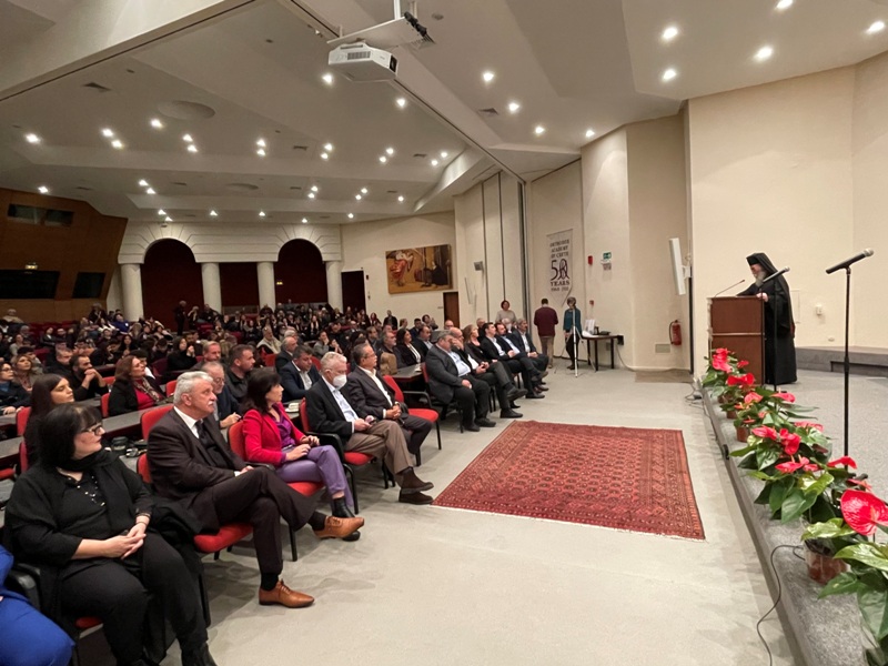 Ο Επίσκοπος μας σημείωσε στον σύντομο χαιρετισμό του: «Η σημερινή όμορφη μέρα των Θεοφανείων θυμίζει σε όλους μας την ανάγκη να γεμίσουν και πλημμυρίσουν οι ζωές μας από φως. Για να διαλυθούν τα πηχτά σκοτάδια των καιρών μας χρειάζεται να μάθουμε να μοιράζουμε τον χρόνο της ζωής μας, αφρουγκαζόμενοι τις ανάγκες και δυσκολίες των συνανθρώπων μας, καθώς με αυτό τον τρόπο όχι μόνον δεν θα παραμένουμε χωρισμένοι από τον «άλλο», αλλά θα διπλασιάσουμε και τον χρόνο της ζωής μας, αφού θα ζούμε ταυτόχρονα στον χρόνο και στην ζωή των άλλων», κατέληξε ο Επίσκοπος μας ευχόμενος τα δέοντα στους νεοεισαχθέντες σε ανώτατα και ανώτερα εκπαιδευτικά Ιδρύματα της Χώρας μας, στην εκπαιδευτική κοινότητα και στο πλήθος του κόσμου που είχε κατακλύσει την αίθουσα. Τον Σεβ. Μητροπολίτη Κυδωνίας και Αποκορώνου εκπροσώπησε ο Αιδ. Πρωτ. π. Γεώργιος Σεργάκης, Αναπλ. Γεν. Αρχιερατικός Επίτροπος.