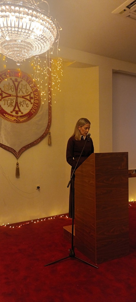 Η Χορωδία της Μητροπόλεως μας «Όσιος Νικηφόρος ο Κρής», υπό την διεύθυνση του Χοράρχη της κ. Γεωργίου Χαχλάκη απέδωσε, αριστοτεχνικά, κάλαντα των Χριστουγέννων, απ΄ όλη την Ελλάδα. Εκ μέρους του απουσιάζοντος σε υπηρεσιακό ταξίδι Σεβ. Μητροπολίτου μας κ. Αμφιλοχίου, χαιρετισμό απεύθυνε ο Πρωτοσύγκελλος της Μητροπόλεως μας, Παν. Αρχ. π. Αγαθάγγελος, ο οποίος ευχαρίστησε την συγγραφέα, αναφέρθηκε στο νόημα της εορτής των Χριστουγέννων, ως «την Μητρόπολη των εορτών», ευχόμενος τα δέοντα δια τις επερχόμενες ημέρες του Αγίου Δωδεκαημέρου. Την εκδήλωση συντόνισε η Διευθύντρια του 1ου Γυμνασίου Κισάμου, κα Αντωνία Μαζοκοπάκη.