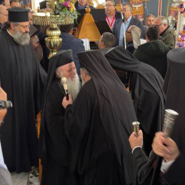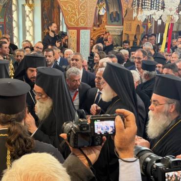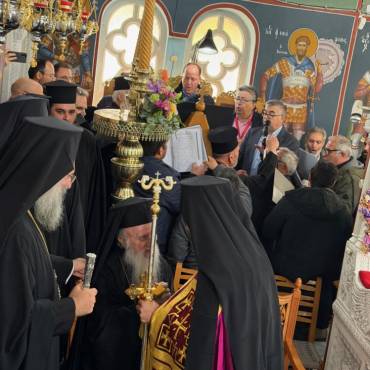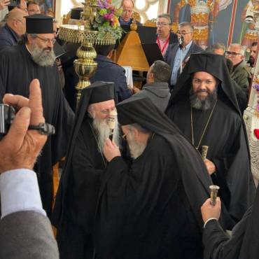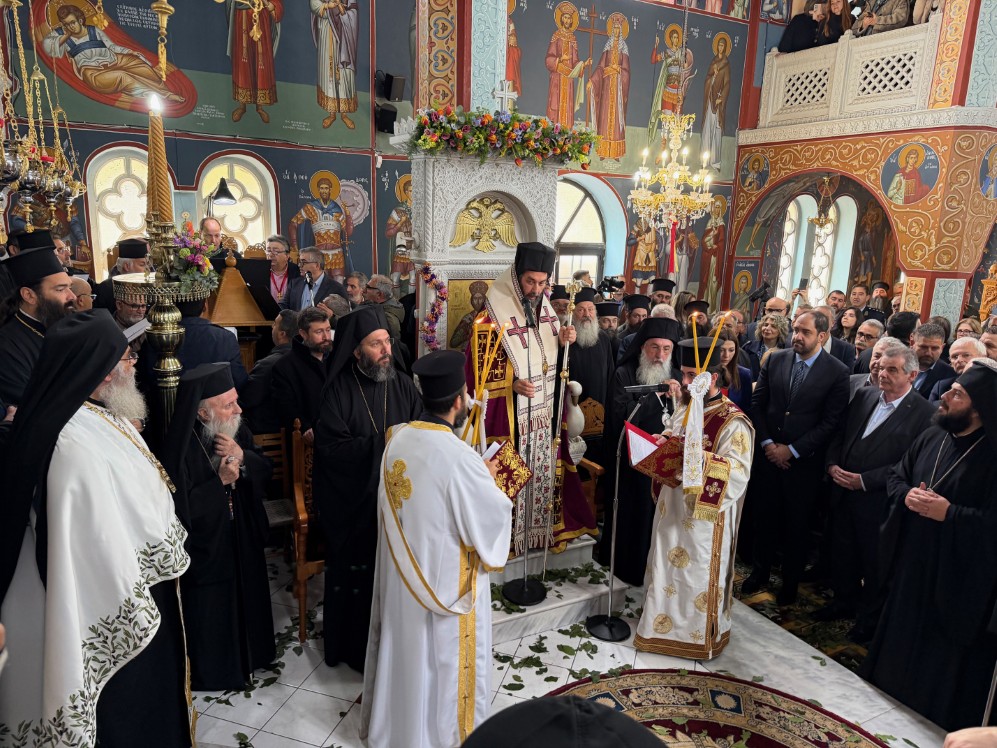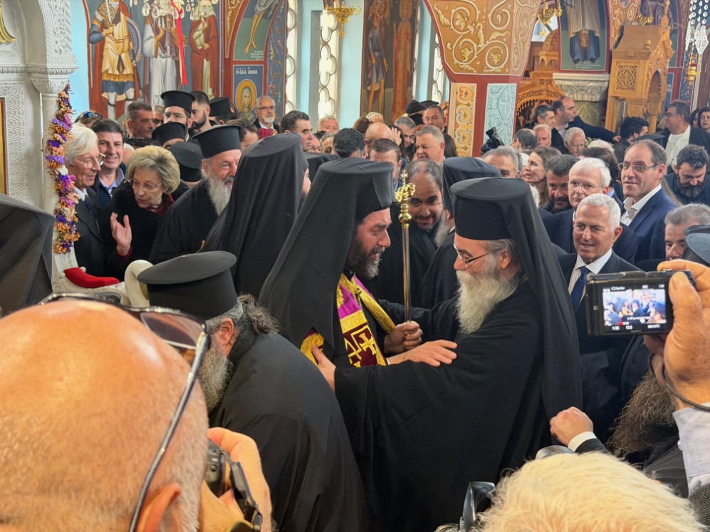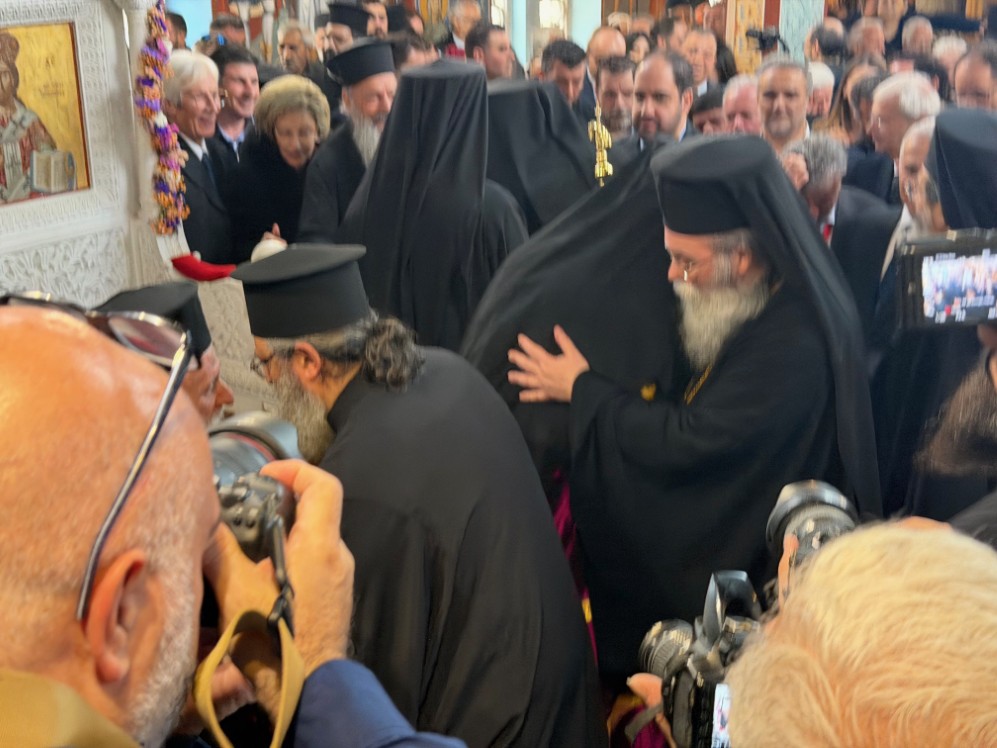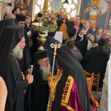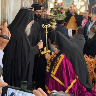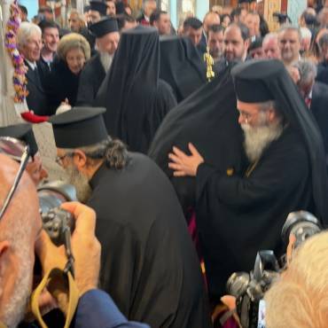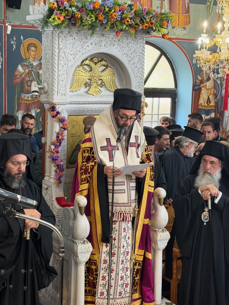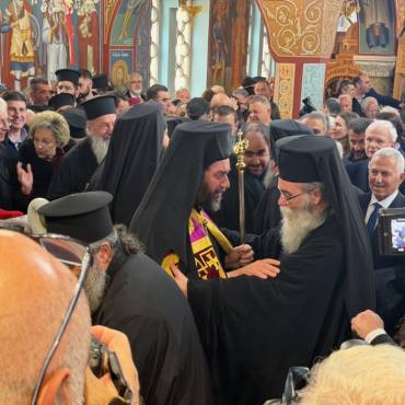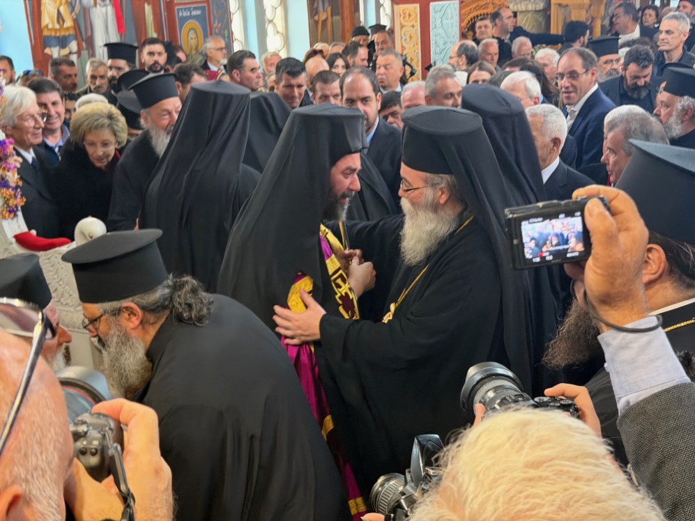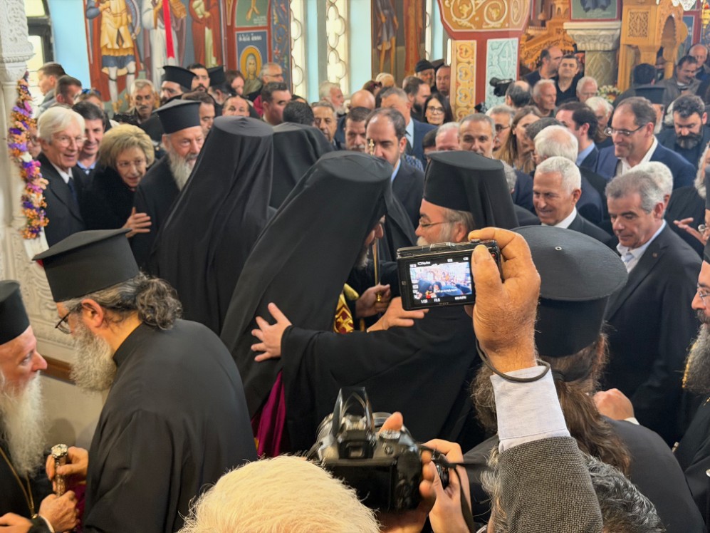 Στην δεξίωση που ακολούθησε στο Πατριαρχικό Ίδρυμα «Άγιος Ραφαήλ» χαιρέτισε η Υπουργός Παιδείας, Θρησκευμάτων και Αθλητισμού κ. Ζαχαράκη. Εκπρόσωποι της Κεντρικής Εξουσίας, της Τοπικής Αυτοδιοικήσεως, του Στρατού, της Αστυνομίας, Φορείς του τόπου και εντυπωσιακό πλήθος πιστών, αρκετοί συνοδεύοντας τον από τον τόπο διακονίας του, την Ιερά Μητρόπολη Γορτύνης και Αρκαδίας μετείχαν του μεγάλου αυτού πνευματικού και εκκλησιαστικού γεγονότος, αναφωνώντας άπαντες το ΑΞΙΟΣ!