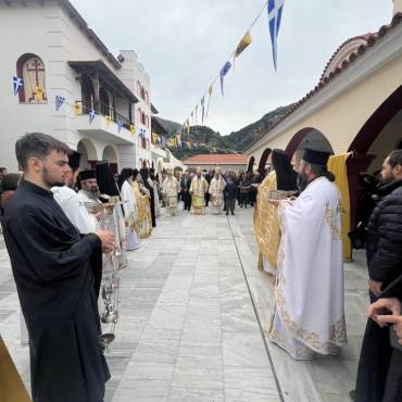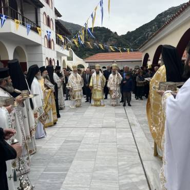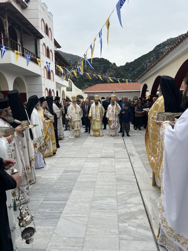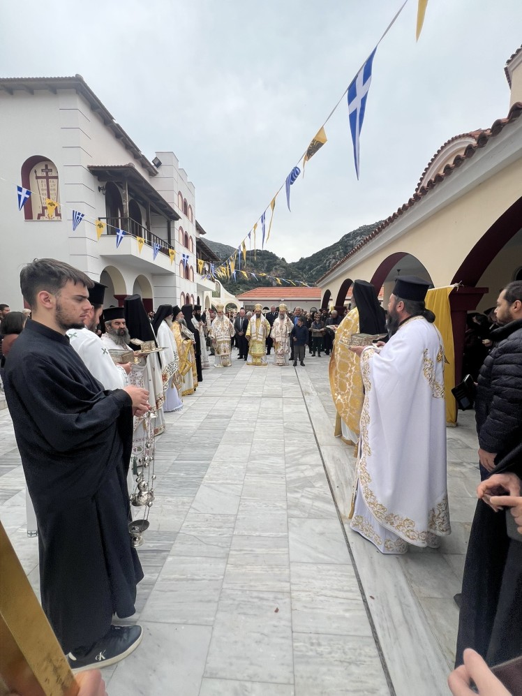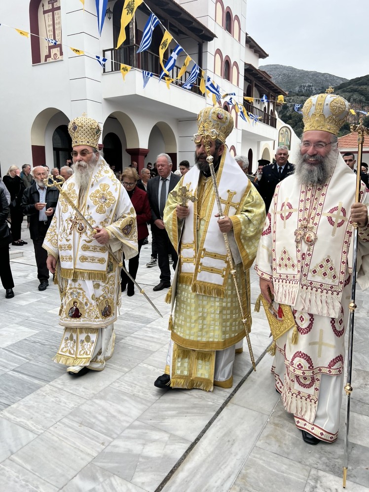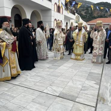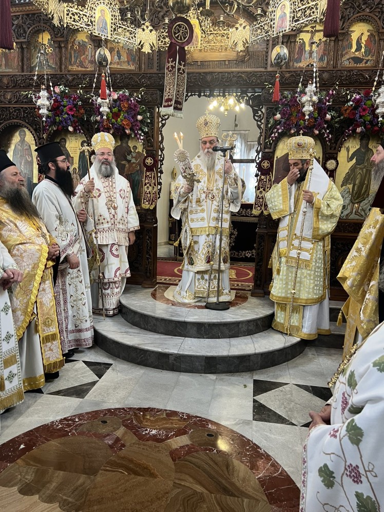 Με τον καλό Δεσπότη μας, παππού τον Ειρηναίο, Ιωακείμ τον εκλεκτό και Ποιμενάρχη νέο». Ακολούθησε η λιτάνευσις των ιερών λειψάνων των Αγίων πέριξ του Καθολικού της Μονής. Στην Απόλυση ο Σεβ. Μητροπολίτης μας κ. Αμφιλόχιος, με λόγους συγκινητικούς και ιδιαίτερα φορτισμένους, μνημόνευσε τον «πολυσέβαστο και πολύτιμο Γέροντα Μητροπολίτη κ. Ειρηναίο, ο οποίος επί 35 έτη σφράγισε τον τόπο και τους ανθρώπους του λιτανεύοντας και μαρτυρώντας Χριστό Εσταυρωμένο και Τούτον Αναστημένο, στις κωμοπόλεις και τα χωρία της Εκκλησιαστικής του Επαρχίας, κερδίζοντας αξίως και δικαίως το βαθύ σέβας και την υιική αγάπη όλου ανεξαιρέτως του λαού του Θεού». Ακολούθως αναφέρθηκε «στο άξιο, σεμνό και ταπεινό διάδοχο του, Σεβ. Μητροπολίτη Λάμπης, Συβρίτου και Σφακίων κ. Ιωακείμ, ο οποίος διακρίνεται για την ποιότητα του χαρακτήρα του, την πιστότητα του εκκλησιαστικού του ήθους και την θυσιαστική αγάπη του δια την Εκκλησία», αναφωνώντας, ομού μετά του πυκνού εκκλησιάσματος το «ΑΞΙΟΣ».