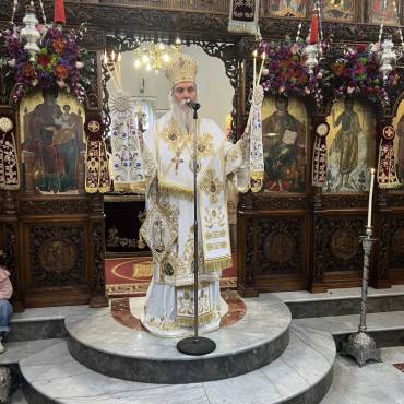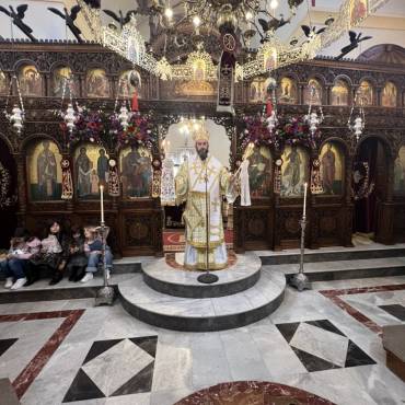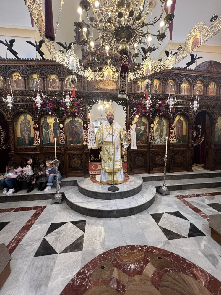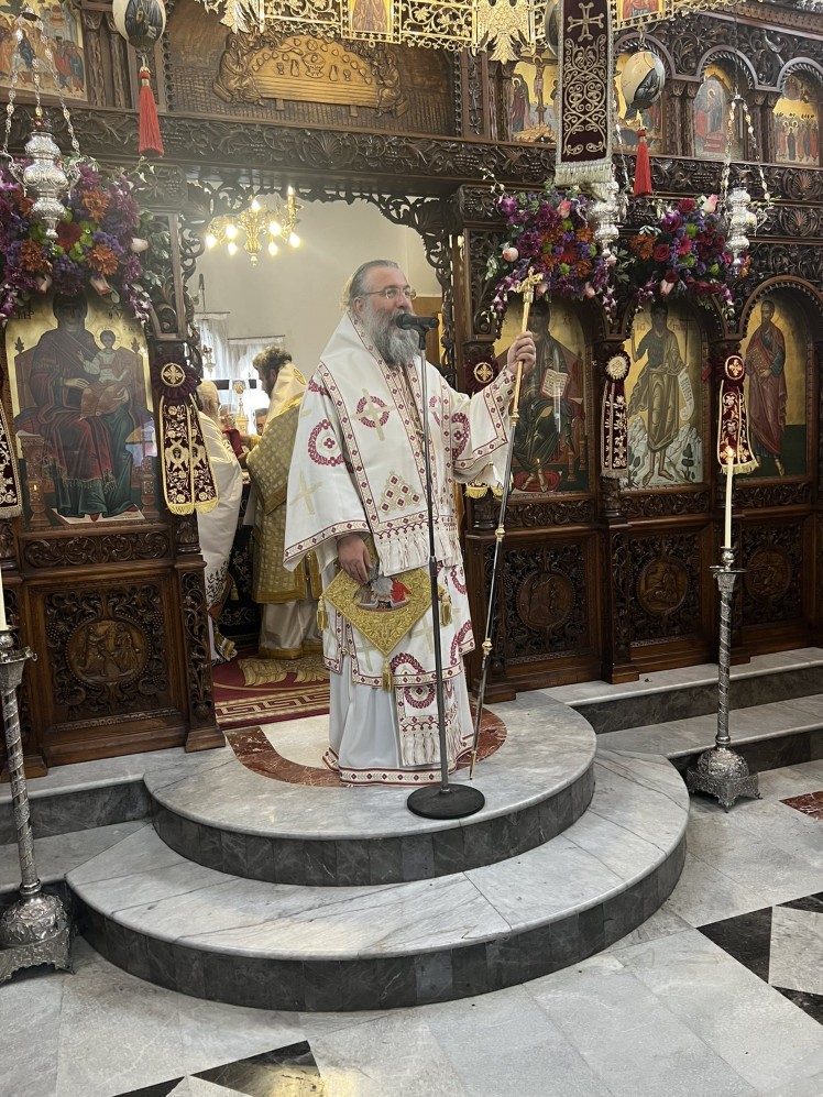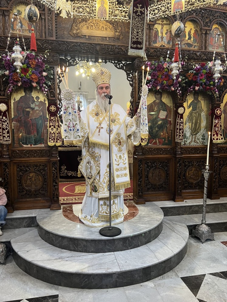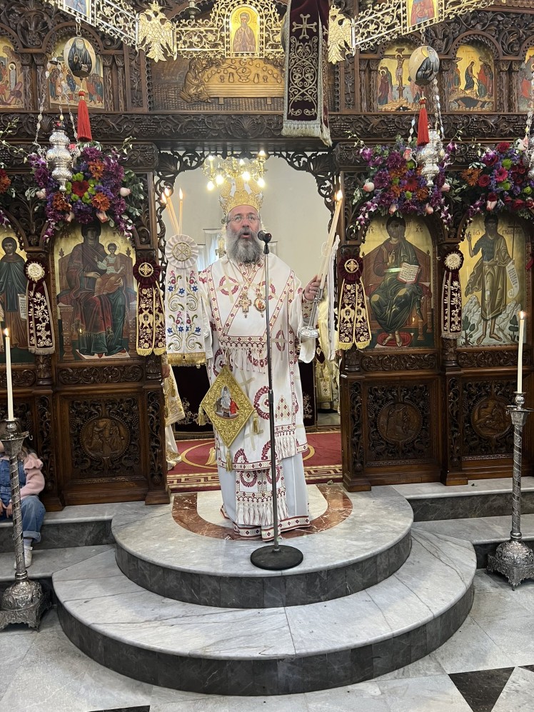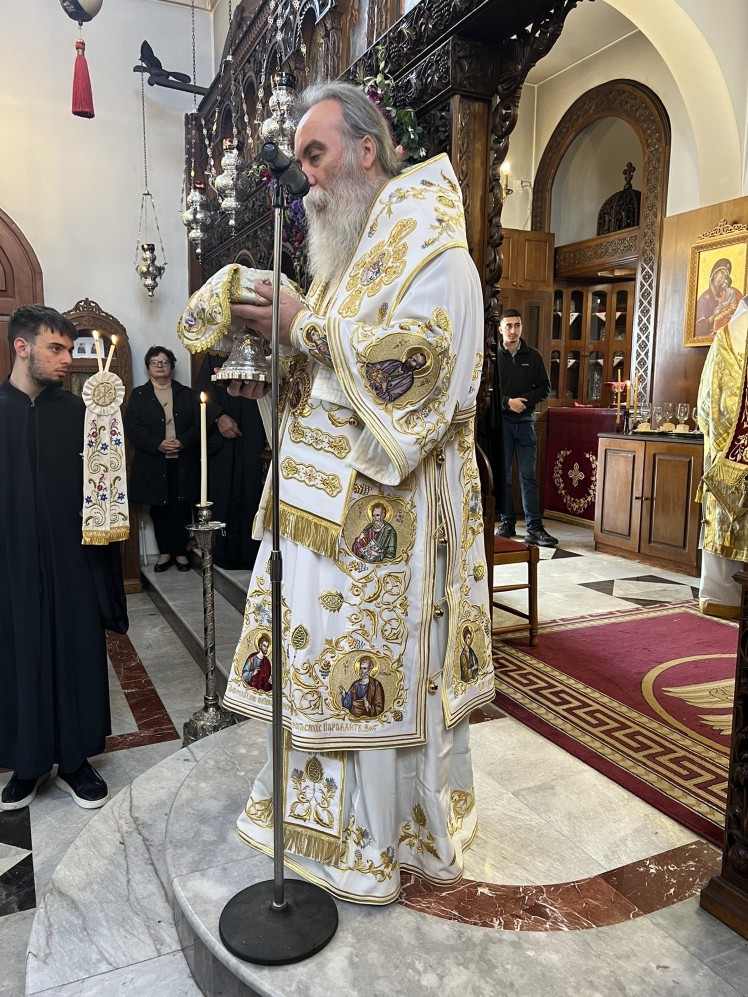 Προσήλθαμε, μαζί με όλους εσάς, ο Σεβ. Μητροπολίτης Κισάμου και Σελίνου κ. Αμφιλόχιος, γόνος πνευματικός και σάρξ εκ της σαρκός αυτής της ευλογημένης Εκκλησιαστικής Επαρχίας, για να συνεορτάσουμε για πρώτη φορά με τον νέο Ποιμενάρχη, τον σεμνό και ταπεινό Μητροπολίτη Ιωακείμ, με τον οποίο έχουμε την χαρά κύκλω της Αγίας Τραπέζης της Λειτουργικής μας συντυχίας. …Οι Νεοφανείς Άγιοι μας διδάσκουν ότι η αλήθεια είναι συνυφασμένη με την Ανάσταση. Μας διδάσκουν να μάθουμε να περιμένουμε, να έχουμε υπομονή, να λαλήσει ο Ουρανός, γνωρίζοντας πως όταν μιλεί ο Ουρανός, σωπαίνει η γη», κατέληξε κατακλείνοντας τον εμπνευσμένο λόγο του με μία μαντινάδα: «Πάσχα με τους Αγίους μας γιορτάζουμε στο Σπήλι και εδώ όλοι εσμίξαμε ως οι καλοί τους φίλοι.