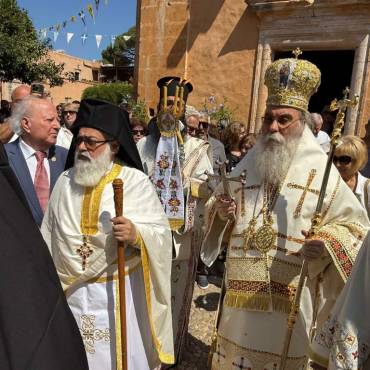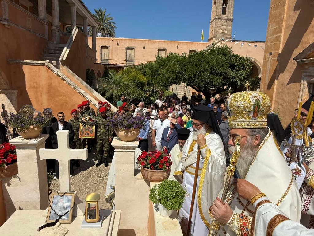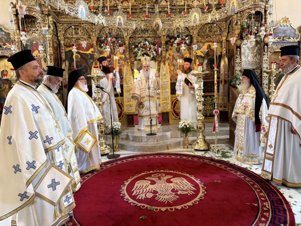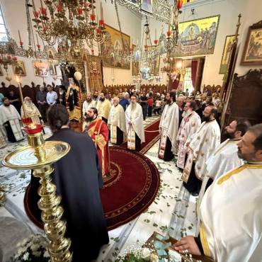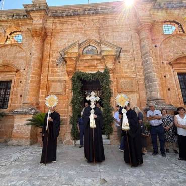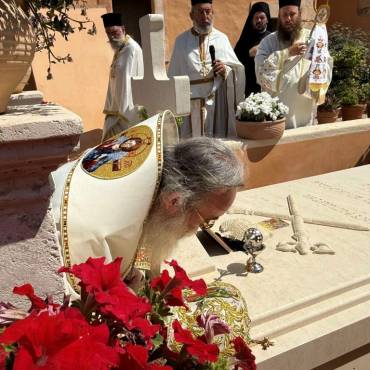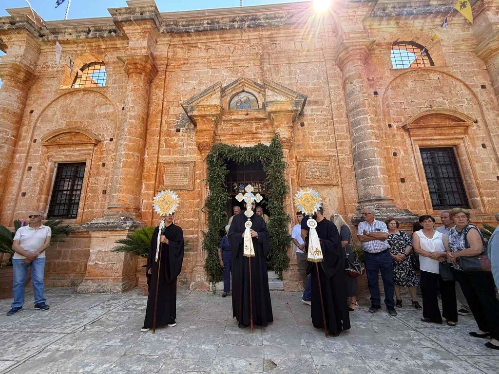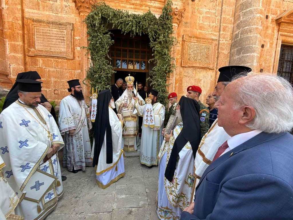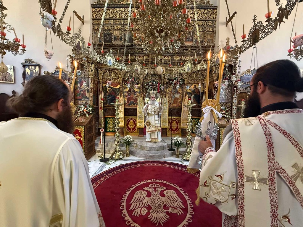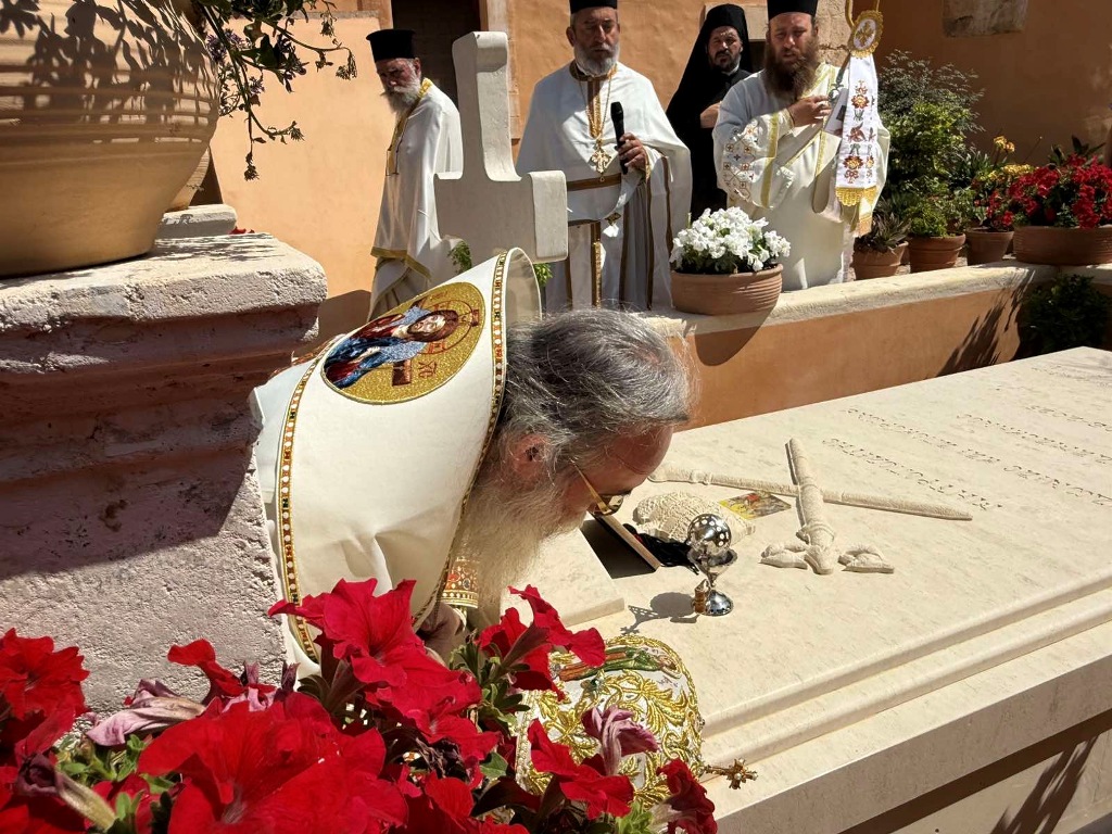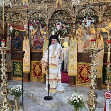 Κατά εορτή της Πεντηκοστής ο Επίσκοπος μας τέλεσε την ιερά πανήγυρι της Ιεράς Πατριαρχικής και Σταυροπηγιακής Μονής Αγίας Τριάδος, Τζαγκαρόλων, προσκεκλημένος του Καθηγουμένου αυτής, Παν. Αρχιμανδρίτου κ. Αμφιλοχίου (Παπαγιαννάκη), κατά σάρκα αδελφού του μακαριστού Μητροπολίτου Κυδωνίας και Αποκορώνου κυρού Δαμασκηνού. Τόσο κατά τον εόρτιο Εσπερινό, όσο και κατά την Θεία Λειτουργία πλήθη προσκυνητών, από την ευρύτερη περιοχή, κατέκλυσαν την ιστορική Ιερά Πατριαρχική Μονή της Αγίας Τριάδος, συνεορτάζοντες το μέγα αυτό και μοναδικό γεγονός της Αγίας Πεντηκοστής. Της Θείας Λειτουργίας ακολούθησε ιερά λιτανεία όπου Επίσκοπος μας τέλεσε Τρισάγιο επί του τάφου του αοιδίμου Μητροπολίτου Κυδωνίας και Αποκορώνου κυρού Δαμασκηνού, ο οποίος ευρίσκεται στον προαύλιο χώρο της Μονής.