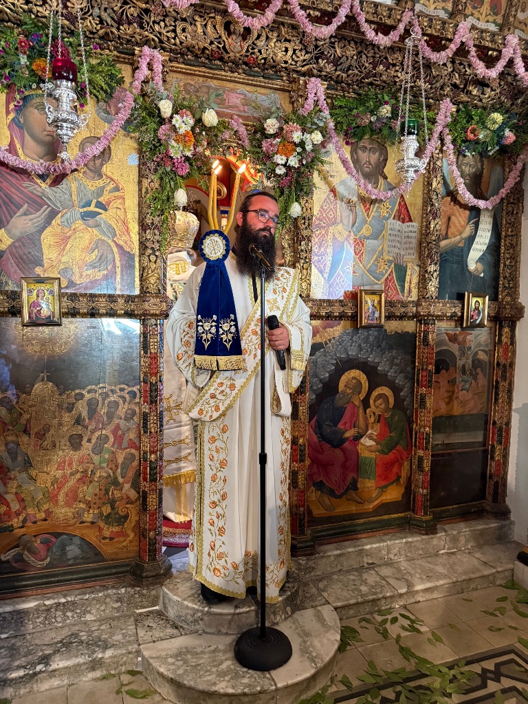 Ο Επίσκοπος μας ευχαρίστησε τον «πολιό και πολυσέβαστο Ιεράρχη, Σεβ. Μητροπολίτη Λάμπης, Συβρίτου και Σφακίων κ. Ειρηναίο», ως και τον «Καθηγούμενο και αγαπημένο εν Χριστώ αδελφό, π. Ιάκωβο», «δια την αγαπητική πρόσκληση». Στον σύντομο λόγο του σημείωσε μεταξύ άλλων: «Ταπεινοί προσκυνητές, ομού μετά πάντων υμών, των εκατοντάδων Χριστιανών που κατακλύζετε τις ημέρες αυτές ετούτο το ιστορικό και περίπτυστο Μοναστήρι του Πρέβελη, ευλαβικά κλείνουμε το γόνυ και προσκυνούμε τον Τίμιο και Ζωοποιό Σταυρό του Κυρίου μας, καθώς εδώ, στην Πατριαρχική Μονή του Πρέβελη, φυλάσσεται το μεγαλύτερο τεμάχιο Τιμίου Ξύλου στην Κρήτη. Προσκυνούμε το «τρισμακάριστον Ξύλο της ζωής», παίρνοντας δύναμη από την δύναμη Του, χάρι από την Χάρι Του, ζωή από την Ζωή Του.