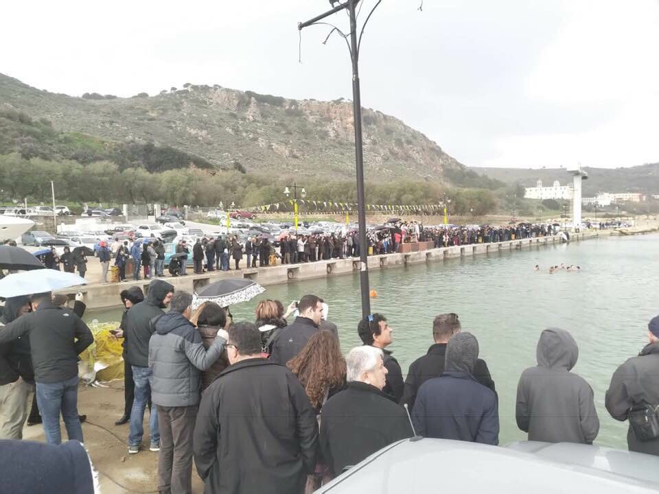 Με την δέουσα λαμπρότητα και μεγαλοπρέπεια εορτάστηκε η μεγάλη αυτή Δεσποτική εορτή της Θείας Επιφανείας και εις την Ι.Μητρόπολη μας, με ρίψη Σταυρού σε όλες τις παράκτιες Ενορίες της Μητροπόλεως. Ο Σεβ. Μητροπολίτης μας κ. Αμφιλόχιος προεξήρχε της Θείας Λειτουργίας εις τον Ι. Μητροπολιτικό μας Ναό, Ευαγγελισμός της Θεοτόκου και εν συνεχεία τέλεσε την τελετή ρίψης του Σταυρού εις το λιμάνι της Κισάμου και εις το λιμάνι του Κολυμβαρίου. Συγκινητική η συμμετοχή πλήθους πιστών τόσο εις την Θεία Λειτουργία, όσο και εις τις ρίψεις του Σταυρού, ιδιαίτερα δε εις το λιμάνι του Κολυμβαρίου, όπου παρά την δυνατή βροχή ο λαός του Θεού παρέμεινε έως το τέλος της Ακολουθίας, αναμένοντας υπομονετικά να προσκυνήσει τον Σταυρό του Κυρίου μας, ο Οποίος καθαγίασε τα ύδατα. Δεκάδες δε και οι νέοι και νέες του τόπου που, παρά το δριμύ ψύχος και την βροχή, ένιωσαν την ανάγκη να βουτήξουν στα παγωμένα νερά της Κισάμου και να λάβουν την ευλογία και χάρι του Σταυρού.