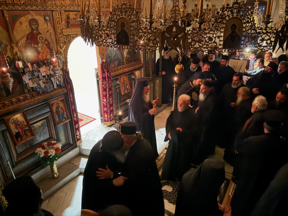 Στην Ιερά Πατριαρχική και Σταυροπηγιακή Μονή Οδηγητρίας Γωνιάς, Κολυμπάρι, τελέστηκε ο Εσπερινός της Συγχωρήσεως, χοροστατούντος του Σεβ. Μητροπολίτου μας κ. Αμφιλοχίου, με την συμμετοχή των πατέρων της Μονής ως και των Κληρικών της Ιεράς Μητροπόλεως. Του Εσπερινού ακολούθησε πνευματική ομιλία υπό του Αιδ. Πρωτ. π. Γεωργίου Σχοινά, Κληρικού της Ιεράς Αρχιεπισκοπής Αθηνών, ο οποίος μίλησε με θέμα: «Η συγχώρηση αφετηρία του εν Χριστώ αγώνος».