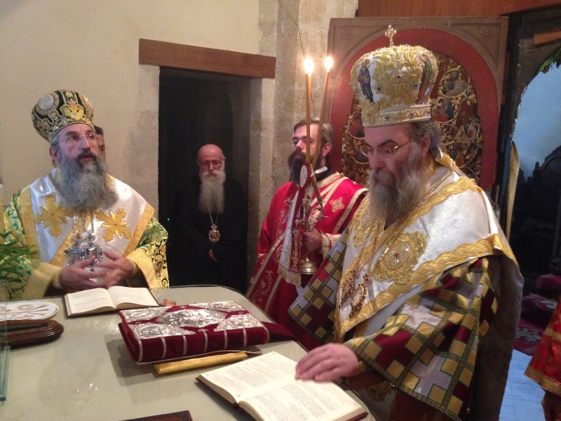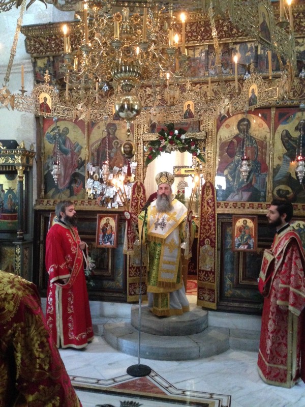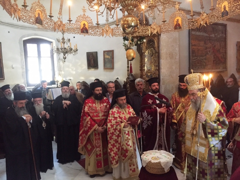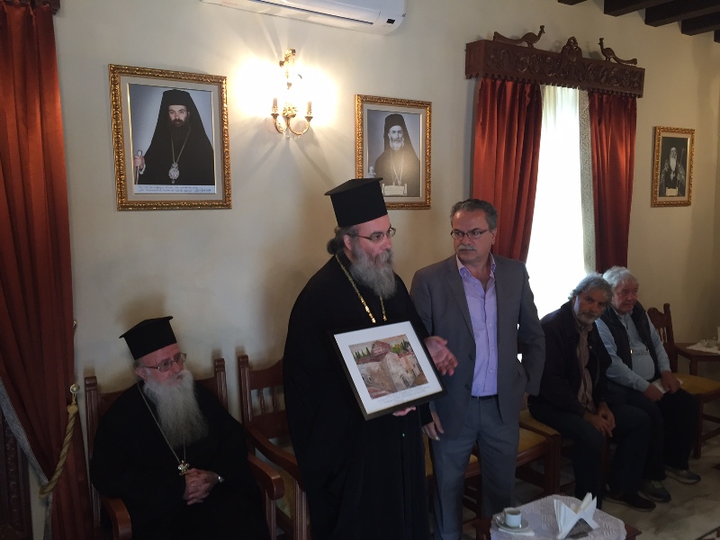 Ο Σεβ. Μητροπολίτης Ρεθύμνης και Αυλοποτάμου κ. Ευγένιος χαιρέτισε, με λόγους θερμούς και αδελφικούς εκ μέρους των παρισταμένων αγίων Αρχιερέων, τον εορτάζοντα Επίσκοπο μας ευχόμενος καλή συνέχεια εις την Αρχιερατική πορεία και διακονία του. Ο Επίσκοπος μας ευχαρίστησε τους Σεβ. αγίους Αρχιερείς ως και όλους τους συμμετέχοντες εις την «προσευχητική αυτή σύναξη», όπως σημείωσε, ζητώντας τις ευχές και προσευχές όλων δια την συνέχιση της ταπεινής του διακονίας. Ακολούθησε κέρασμα εις το Αρχονταρίκη της Μονής όπου τον προσφώνησε ο Γεν. Δντής της ΟΑΚ Δρ. Κωνσταντίνος Ζορμπάς, ως επίσης και ο Δήμαρχος Πλατανιά κ. Ιωάννης Μαλανδράκης, ο οποίος του προσέφερε και μία γκραβούρα του ιστορικού Ι. Ναού Μιχαήλ Αρχαγγέλου, Ροτόντας.