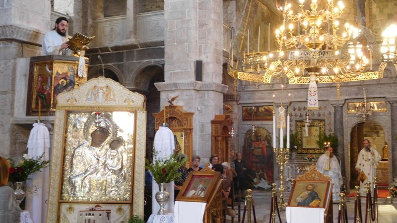 Συγκινητική η συμμετοχή εκατοντάδων πιστών κατά το εόρτιο διήμερο. Κατά την παραμονή του εις την όμορφη Πάρο ο Επίσκοπος μας προσκύνησε Ιερές Μονές της νήσου και είχε την μεγάλη ευλογία να λειτουργήσει εις το προσκύνημα της Παναγίας της Εκατονταπυλιανής, όπου η παρουσία της Παναγίας Μητέρας μας είναι ολοζώντανη δια της θαυματουργού Εικόνος Της.
