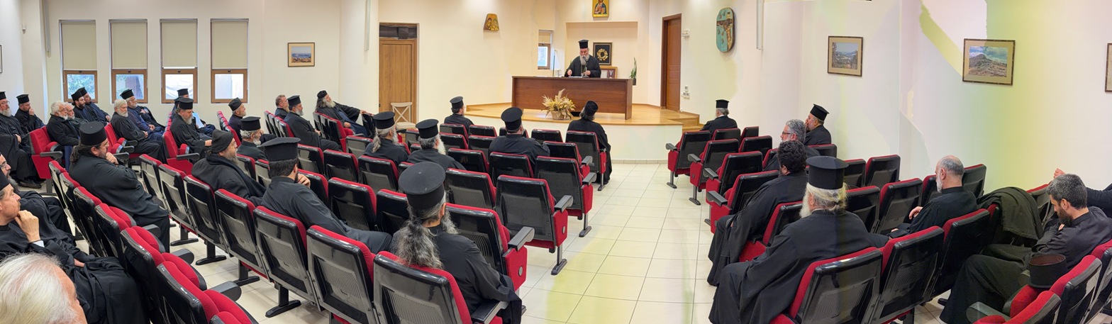 Με την συμμετοχή όλων των Κληρικών της Ιεράς Μητροπόλεώς μας, παρεκτός ενός ο οποίος λόγω των δυνατών ανέμων των τελευταίων ημερών βρίσκεται αποκλεισμένος στην νήσο Γαύδο, που εκκλησιαστικά υπάγεται στην Ιερά Μητρόπολή μας, πραγματοποιήθηκε στους χώρους του Φαλδάμειου Οικήματος της Ι. Μητροπόλεως η καθιερωμένη, προ της Αγίας και Μεγάλης Τεσσαρακοστής, Ιερατική Σύναξη. Μετά την προσευχή ο Σεβ. Ποιμενάρχης μας κ.Αμφιλόχιος καλωσόρισε τους Κληρικούς της Ι. Μητροπόλεώς μας σημειώνοντας την αναγκαιότητα των Συνάξεων αυτών, καθώς ως είπε «… δεν πρόκειται περί τυπικών υπηρεσιακών συναντήσεων, αλλά περί ευκαιριών πνευματικού αναστοχασμού,  βεβαίωσις ενότητας της τοπικής Εκκλησίας, καθώς δεν νοείται Εκκλησιαστικό σώμα δίχα του Επισκόπου, ούτε και Επίσκοπος δίχα του Εκκλησιαστικού σώματος, του οποίου (Επισκόπου) πρώτοι και άμεσοι συνεργοί στο έργο του ευαγγελισμού των ψυχών είναι οι Κληρικοί».