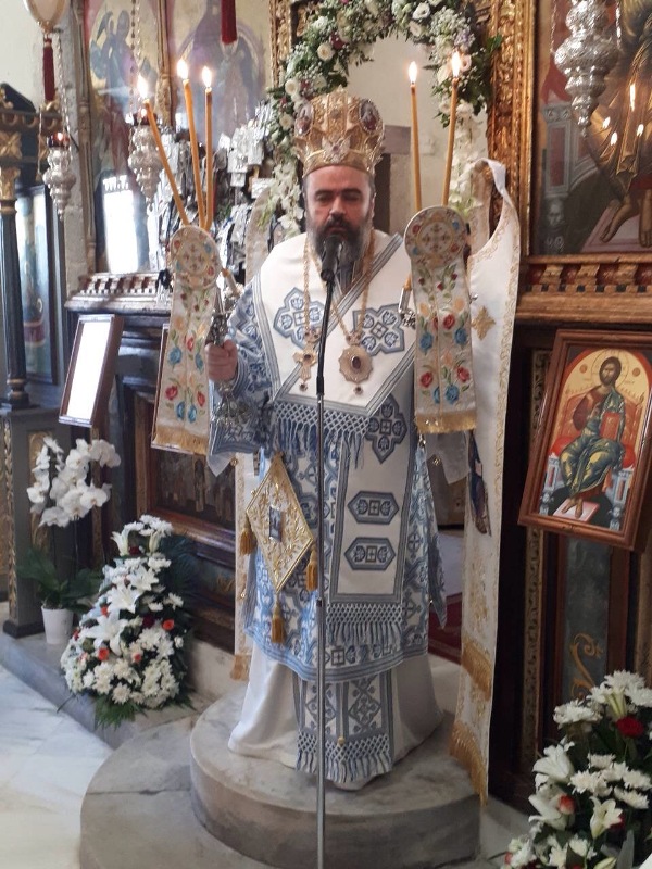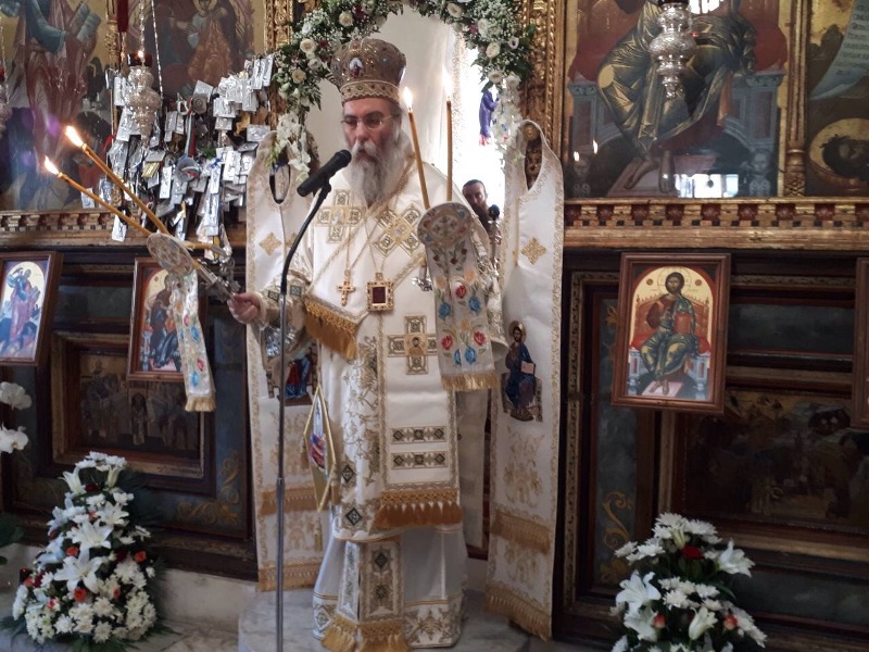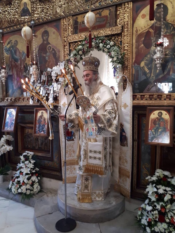 Ο Σεβ. Μητροπολίτης μας καλωσόρισε, με λόγους θερμούς τον Ιεράρχη του Οικουμενικού Θρόνου, Σεβ. Μητροπολίτη Σμύρνης κ. Βαρθολομαίο, ως επίσης και τον Ιεράρχη της Εκκλησίας της Ουκρανίας, Σεβ. κ. Αλέξανδρο. Στον χαιρετισμό του σημείωσε: «.. Τώρα λοιπόν που οι αξίες, τα πιστεύω, και τα ιδανικά του Γένους και της Φυλής απαξιώνονται, τώρα που όλες αυτές οι ραγδαίες και ανησυχητικές εξελίξεις σηματοδοτούν την αβέβαιη και επίπεδη καθημερινότητα μας, τώρα που στεκόμαστε στο σταυροδρόμι της ανασφάλειας για το αύριο με την απογοήτευση για το χθές, τώρα είναι η ώρα της Παναγίας.
