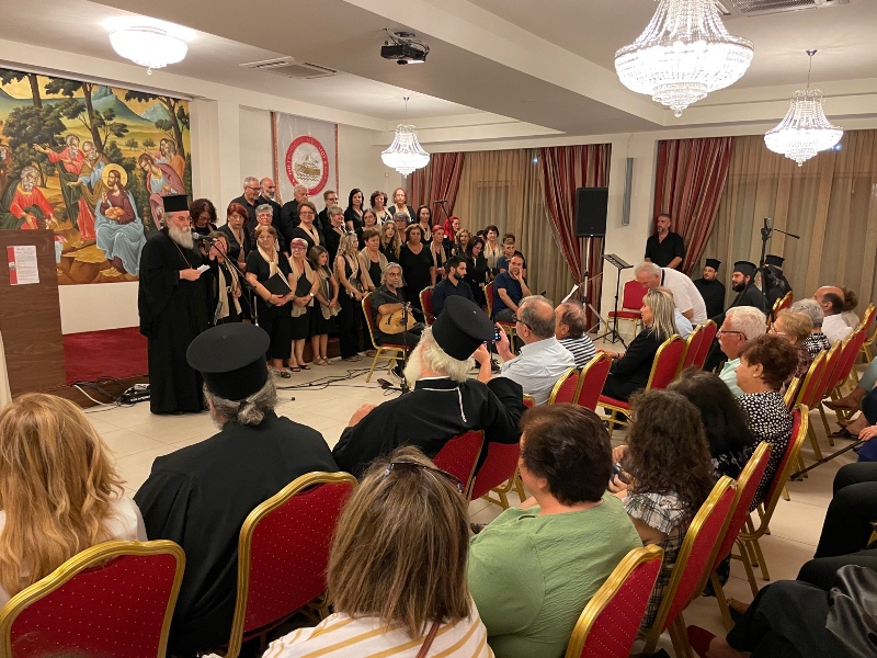 Τμήμα της Βυζαντινής και Παραδοσιακής Χορωδίας του Ωδείου της Ι. Μητρόπολεως μας, αριστοτεχνικά απέδωσαν τραγούδια για την επέτειο της Μικράς Ασίας. Η εκδήλωση έκλεισε με ευχαριστήριο χαιρετισμό του Σεβ. Μητροπολίτο μας κ. Αμφιλοχίου, ο οποίος εξέφρασε ευχαριστίες και ευγνωμοσύνη εις τον Σεβ. Μητροπολίτη Αρκαλοχωρίου, Καστελλίου και Βιάννου κ. Ανδρέα, «τον Ψηλορείτη της νεώτερης Εκκλησιαστικής Ιστορίας», ως είπε και «κορυφαίο Ιεράρχη του Οικουμενικού θρόνου και της Εκκλησίας Κρήτης». Ευχαρίστησε, επίσης, την συγγραφέα κα Ζαχαρένια Σημανδηράκη και τους συνδιοργανωτές: Αντιπεριφέρεια Κρήτης και Φιλολογικό Σύλλογο Κισάμου «Κισαμικός», την χορωδία του Ωδείου της Ι. Μητροπόλεως μας και την συντονίστρια της εκδήλωσης, κα Αντωνία Μαζοκοπάκη, Διευθύντρια 1ου Γυμνασίου Κισάμου, σημειώνοντας: «Ευκαιρία μνήμης, αναστοχασμού και ευθύνης ενώπιον της ιστορίας η θλιβερή αυτή επέτειος.