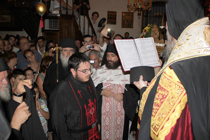 Κατά τον πανηγυρικό Εσπερινό που τελέστηκε το εσπέρας της κυριωνύμου ημέρας της εορτής της Κοιμήσεως Θεοτόκου στην εορτάζουσα Ιερά Πατριαρχική και Σταυροπηγιακή Μονή Οδηγητρίας Γωνιάς Κολυμβαρίου, χοροστατούντος του Σεβασμιωτάτου Μητροπολίτου μας κ. Αμφιλοχίου, έλαβε χώρα και η μοναχική κουρά του δόκιμου της Μονής κ. Αντωνίου Τσαχάκη, πτυχιούχου Θεολογίας, κατόχου Μεταπτυχιακού τίτλου σπουδών και φοιτητού του 3ου έτους της Ιατρικής.