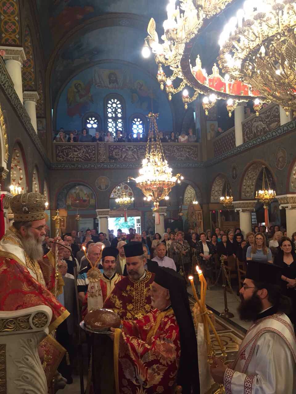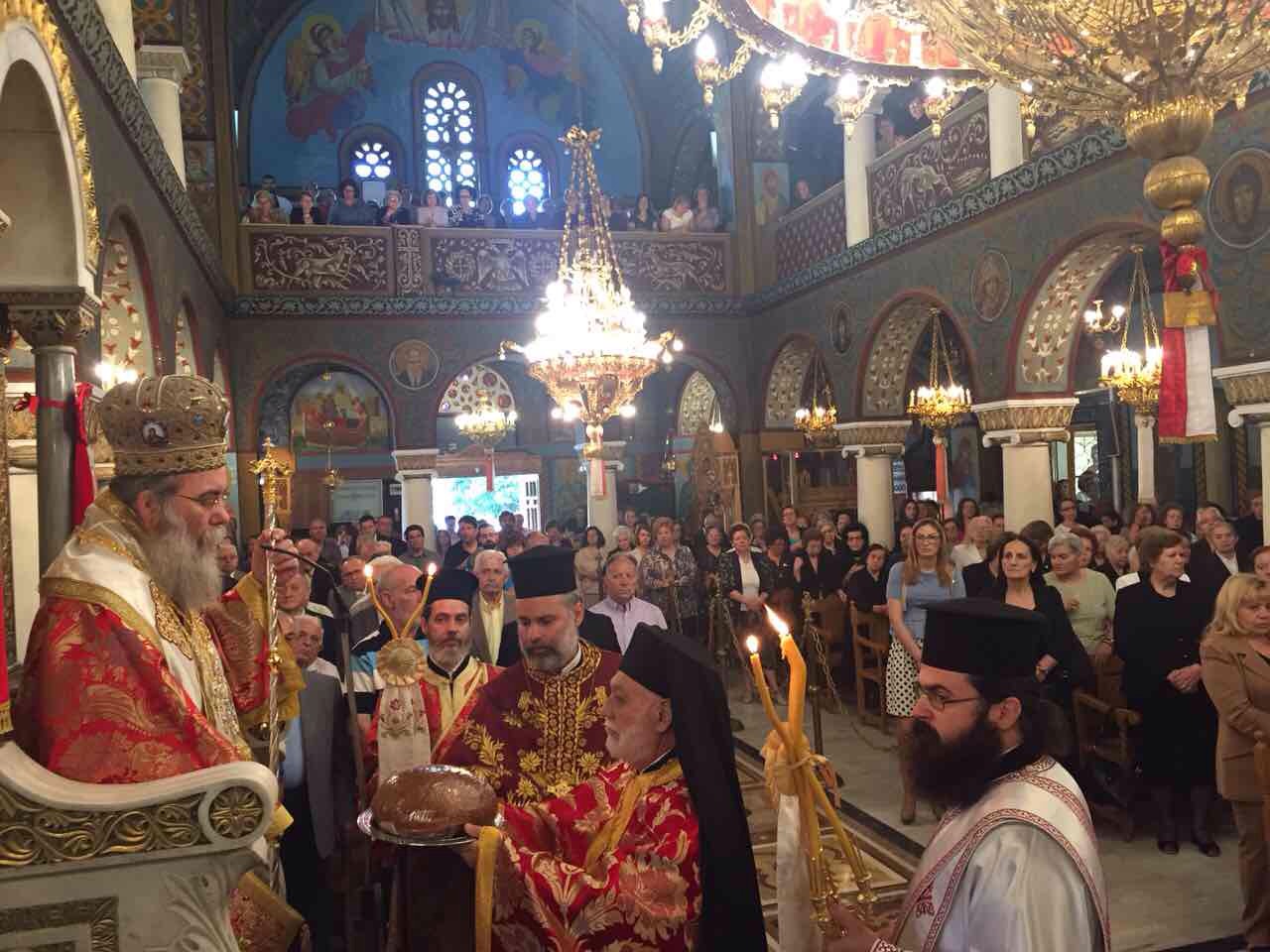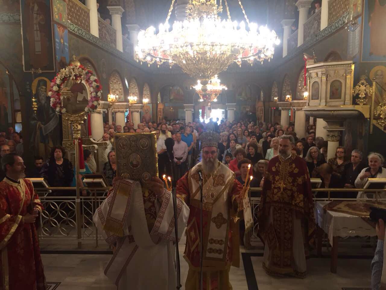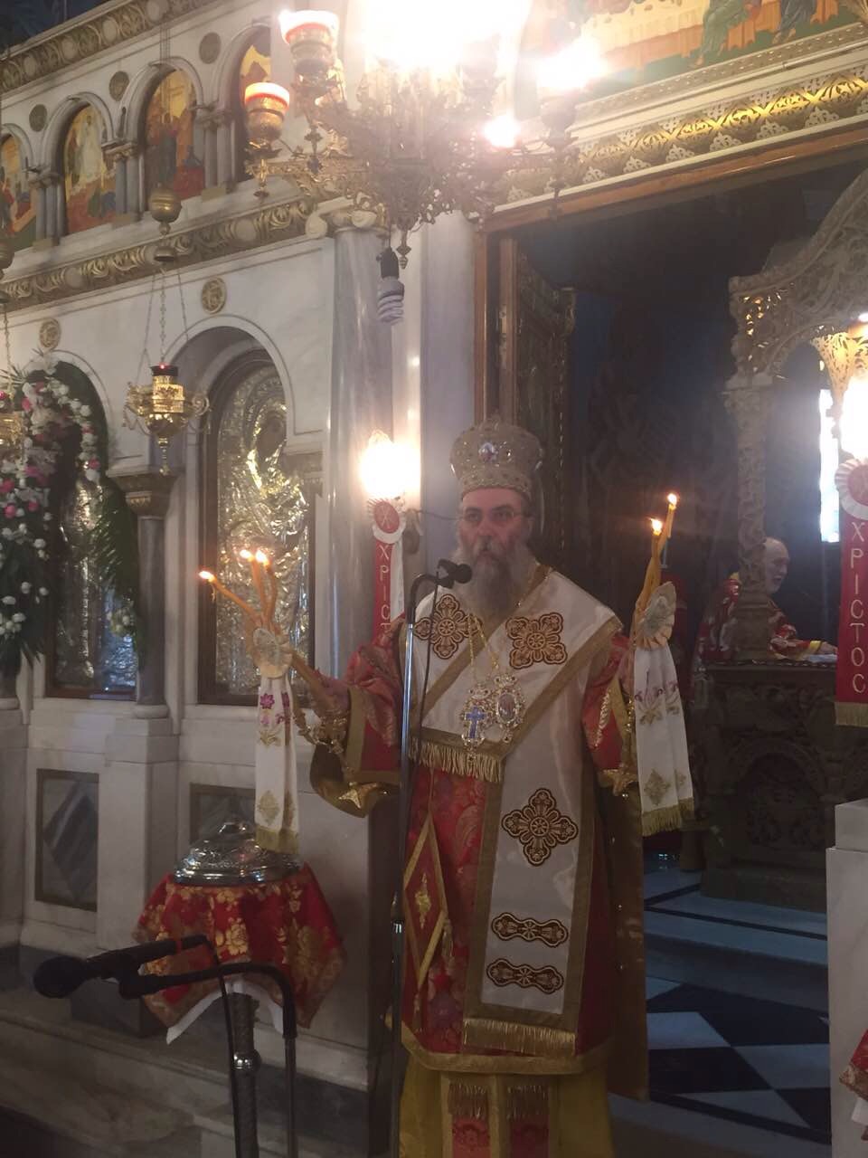Σε μια εποχή λοιπόν που τα ιερά σύμβολα της πίστεως μας προκλητικά χλευάζονται και αμφισβητούνται, που η αργία της Κυριακής βάρβαρα και βάναυσα βεβηλώνεται και ρυπαίνεται στο όνομα της δήθεν προόδου και ευημερίας, επίκαιρο όσο ποτέ το μήνυμα της μεγάλης αυτής ημέρας και εορτής», κατέληξε ο Επίσκοπος μας κ. Αμφιλόχιος καλώντας το πολυπληθές εκκλησίασμα όπως μείνει σταθερό στην πατρώα πίστη και ευσέβεια. Τον προεξάρχοντα Αρχιερέα καλωσόρισε και ευχαρίστησε, με λόγους θερμούς, ο Προϊστάμενος του Ναού, Παν. Αρχιμανδρίτης κ. Κλήμης Φιλίππου. Συγκινητική η συμμετοχή εκατοντάδων πιστών καθ΄ όλη την διάρκεια των Ι. Ακολουθιών του διημέρου.