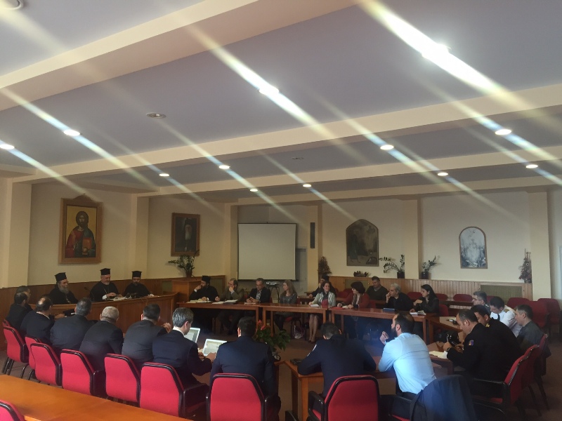 Ο Σεβ. Μητροπολίτης μας κ. Αμφιλόχιος, Πρόεδρος της Ορθοδόξου Ακαδημίας Κρήτης, χαιρέτισε, καλωσόρισε την Αντιπροσωπεία του Οικουμενικού Πατριαρχείου και ευχαρίστησε τους εκπροσώπους Φορέων και Αρχών δια την αποδοχή της πρόσκλησης και αναφέρθηκε εις την σπουδαιότητα του γεγονότος, το οποίο χαρακτήρισε «υψίστης ιστορικής σημασίας που θα σημαδέψει τον τόπο και την ιστορία». Ακολούθως ο Σεβ. Μητροπολίτης Γαλλίας κ. Εμμανουήλ μετέφερε τις ευχές και την ευλογία της Α.Θ.Π. του Οικουμενικού Πατριάρχου κ.κ.Βαρθολομαίου και έκανε αναφορά εις το Πρόγραμμα της Αγίας και Μεγάλης Συνόδου.