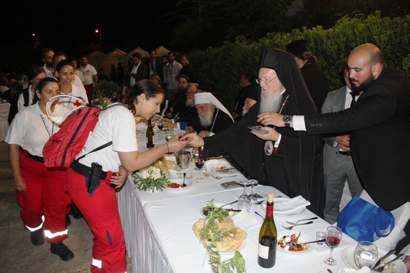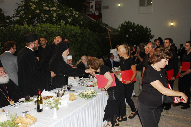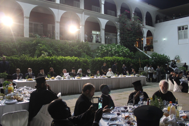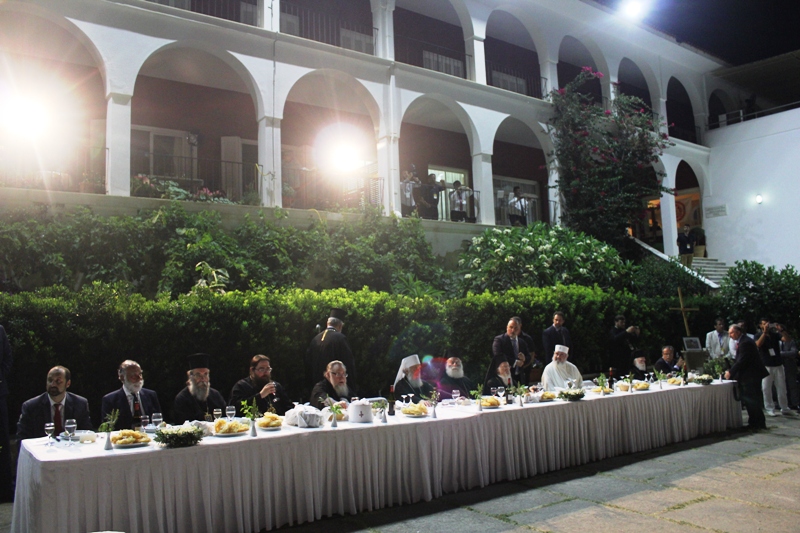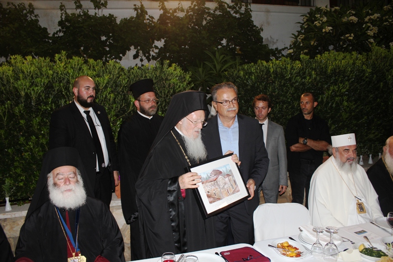 Ευχαρίστησε τον Επίσκοπο μας ως και τον Γενικό Δντή του Ιδρύματος Δρ. Κωνσταντίνο Ζορμπά δια την εργώδη φροντίδα και τους κόπους προετοιμασίας του Ιδρύματος να υποδεχθεί και φιλοξενήσει το κορυφαίο αυτό ιστορικό γεγονός. Ακολούθησε φιλοξενία όλων των Συνέδρων στον προαύλιο χώρο της Ακαδημίας, υπό του Ιδρύματος με την συμμετοχή των Αρχών της Κρήτης και του τόπου.