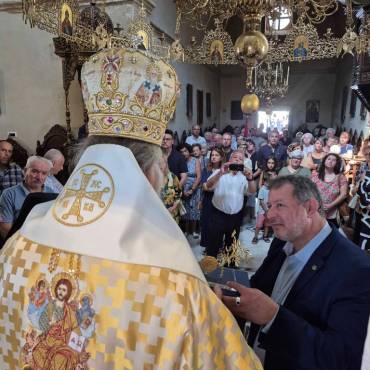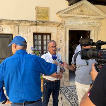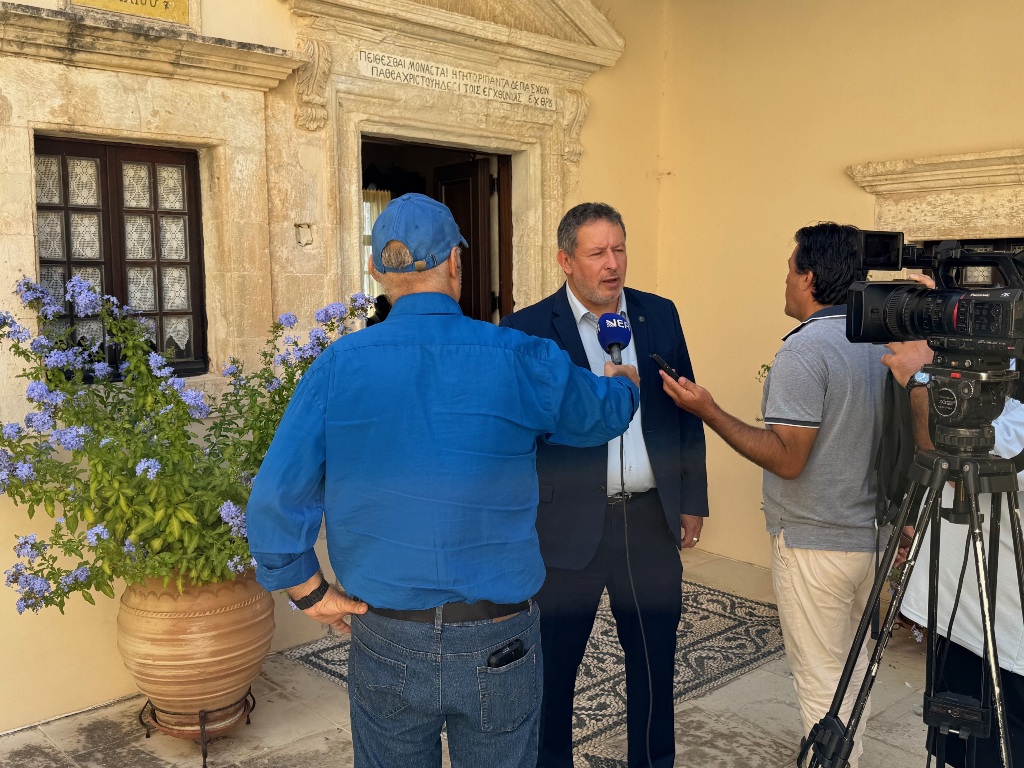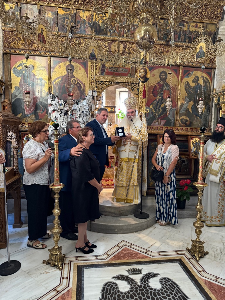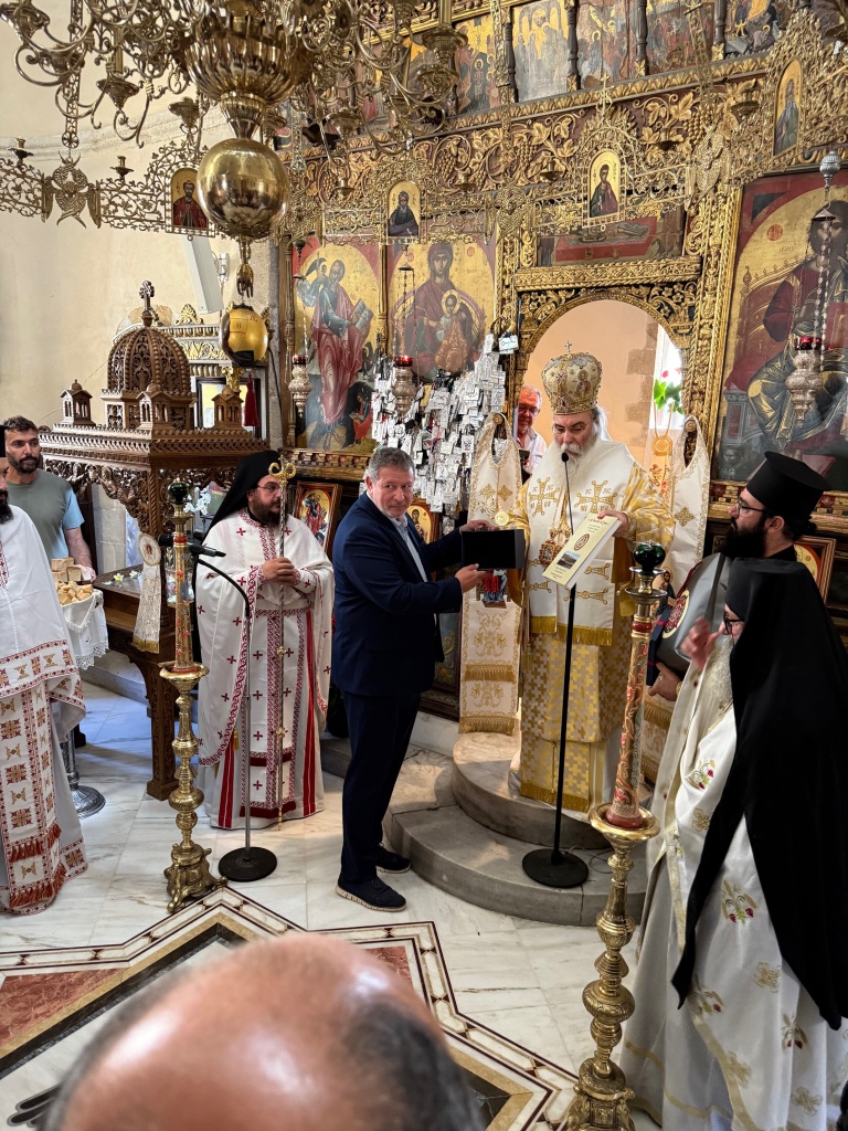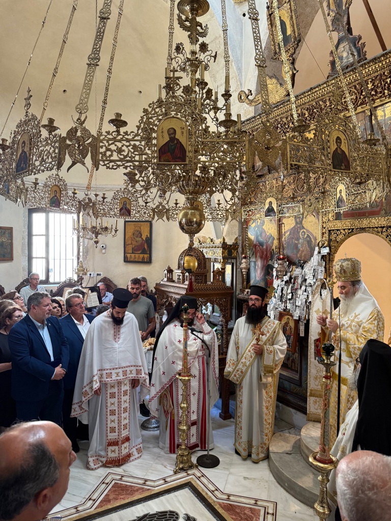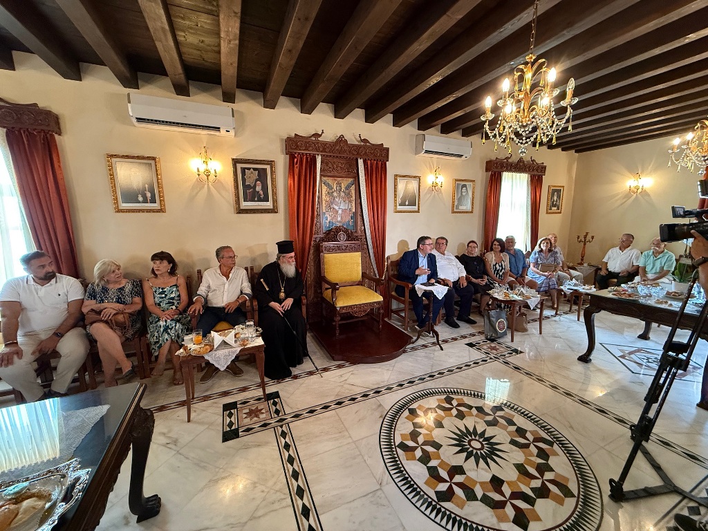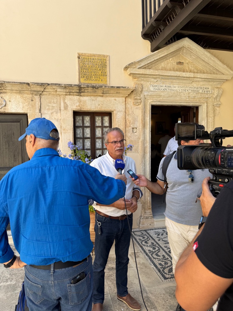 Ακολούθως ο Πρόεδρος του Παγκοσμίου Συμβουλίου Κρητών κ.Καστρινάκης, χαιρέτισε και ευχαρίστησε τον λειτουργό Ιεράρχη κ. Αμφιλόχιο, προσφέροντας τιμητική πλακέτα του Π.Σ.Κ. Ακολούθησε πλούσια φιλοξενία στο Αρχονταρίκι της Μονής όπου εκεί ο κ. Νίκος Καστρινάκης, σε συνέντευξη Τύπου, ανακοίνωσε ότι το Μεγάλο Συνέδριο του Παγκοσμίου Συμβουλίου Κρητών, το οποίο θα πραγματοποιηθεί τον Ιούλιο του 2026, με την συμμετοχή Κρητών απ΄ όλα τα μήκη και πλάτη της γης, θα πραγματοποιηθεί στην Ορθόδοξο Ακαδημία Κρήτης, με κεντρικό θέμα: «Η θέση της Κρήτης στο σήμερα και το αύριο».