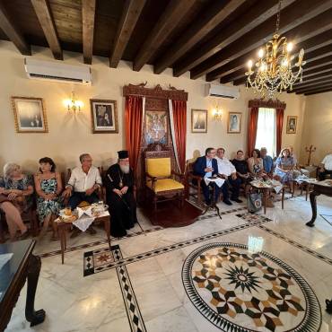 Είναι η απάντηση του αν αλλάζει ο άνθρωπος, αφού η Εκκλησία καλεί όλους μας να μεταμορφωθούμε και όχι να συμμορφωθούμε σε ένα πρότυπο. Ακούγοντας την σημερινή Ευαγγελική περικοπή συνειδητοποιούμε ότι, τελικά, στην πορεία μας μέσα στην Εκκλησία η ζωή μας είναι παρόμοια με αυτή του Απ. Πέτρου. Μέσα σε μια βάρκα που θαλασσοδέρνεται από τα κύματα, με την θάλασσα να είναι συνήθως ταραγμένη. Το ερώτημα είναι αν θα τολμήσουμε να εμπιστευτούμε τον Χριστό ή αν θα συνεχίσουμε να βουλιάζουμε στις αυταπάτες της αυτάρκειας μας», κατέληξε. Ακολούθως, με λόγους θερμούς, καλωσόρισε και χαιρέτισε το Δ.Σ. του Παγκοσμίου Συμβουλίου Κρητών, στο πρόσωπο του Προέδρου αυτού κ. Νικολάου Καστρινάκη ως και όλων των μελών του Δ.Σ. Παρόντες εκπρόσωποι από την Παγκρητική Ένωση Αμερικής, την Κρητική Ομοσπονδία Αυστραλίας και Νέας Ζηλανδίας, την Παγκρητική Ομοσπονδία Ευρώπης, την Παγκρητική Ένωση Αθηνών, την Παγκρητική Αδελφότητα Μακεδονίας, την Αδελφότητα Κρητών Πειραιά «Ομόνοια» ως και την Παγκρήτια Ένωση Νότιας Αφρικής, αναφέροντας: «Με χαρά και αγάπη καλωσορίζουμε τους απανταχού της γης Κρήτες και Κρήσσες, στο πρόσωπο του άξιου Προέδρου του Παγκοσμίου Συμβουλίου Κρητών κ. Νικολάου Καστρινάκη, ως και όλων των εκλεκτών μελών του Δ.Σ., εκπροσώπων των όπου γης Κρητών. Εσείς είστε οι καλύτεροι πρεσβευτές της Κρήτης, όπου γης, καθώς όπου ζείτε και μεγαλουργείτε εκεί και μεταφυτεύσατε ‘μια άλλη Κρήτη’.