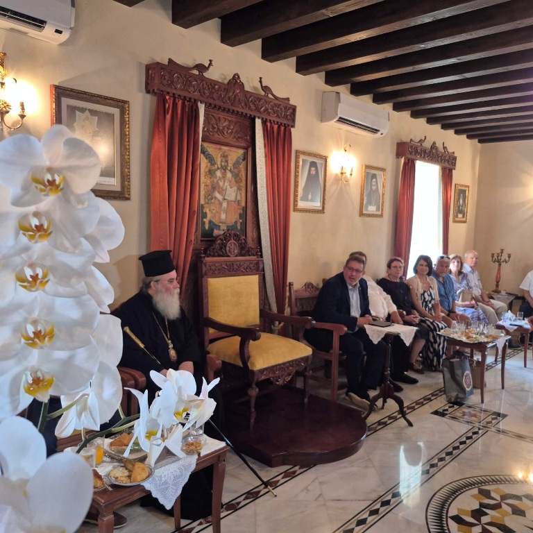 Γιατί η ψυχή της Κρήτης δεν εγκλωβίζεται σε γεωγραφικά όρια και σύνορα. Όσο η πίστη, όσο ο πολιτισμός, η ιστορία, η παράδοση, η αρχοντιά, οι αρχές της Κρήτης, όσο μεταλαμπαδεύονται και μεταφυτεύονται, τόσο η ψυχή της Κρήτης θα χτυπά και θα αιματοδοτεί τις απανταχού της γης Κοινότητες των Κρητών. Τιμή και δόξα σε όλους και όλες εσάς, τα απόδημα τέκνα της μάνας Κρήτης, καθώς εξ΄ αιτίας εσάς αυτή η.. ‘άλλη Κρήτη’, ζει στα πέρατα της οικουμένης», κατέληξε ο Σεβ. Μητροπολίτης μας κ. Αμφιλόχιος, προσφέροντας στον Πρόεδρο του Παγκοσμίου Συμβουλίου Κρητών κ. Νίκο Καστρινάκη, επετειακό ενθύμημα 50 ετών της Ορθοδόξου Ακαδημίας Κρήτης, ως και επετειακό Τόμο της Αγίας και Μεγάλης Συνόδου της Ορθοδόξου Εκκλησίας.