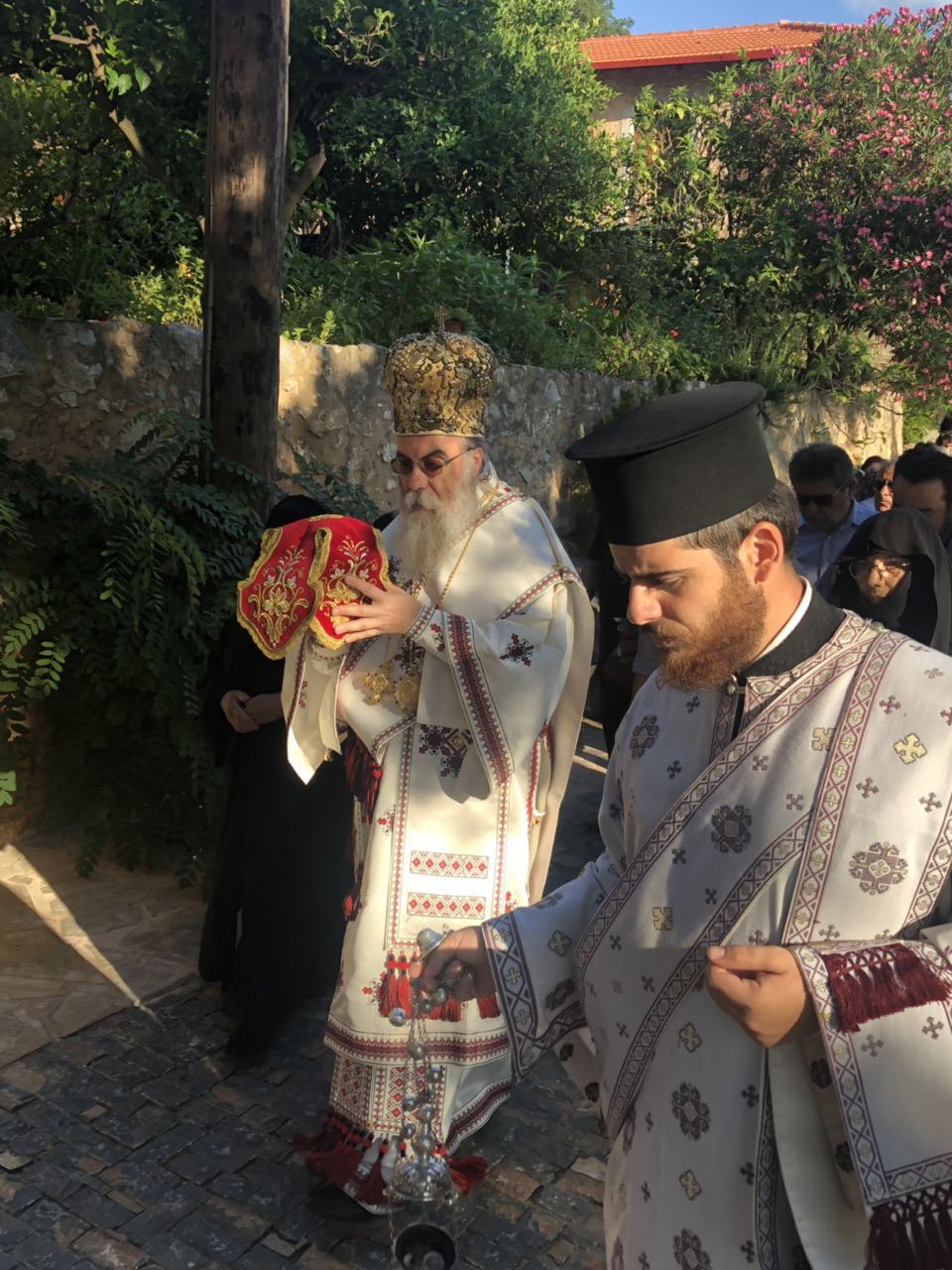 Προσέφερε δε εις την Καθηγουμένη αργυρούν σταυρό ευλογίας, αντίγραφο εκ του Κειμηλιαρχείου της Ι. Πατριαρχικής Μονής Γωνιάς. Ακολούθησε πλούσια μοναστηριακή φιλοξενία, όπου εις την τράπεζα ευχαρίστησε ο Σεβ. Μητροπολίτης Μαρωνείας κ. Παντελεήμων. Πλήθος πιστών από την ευρύτερη περιοχή και την λοιπή Κρήτη μετείχαν των ιερών εγκαινίων.