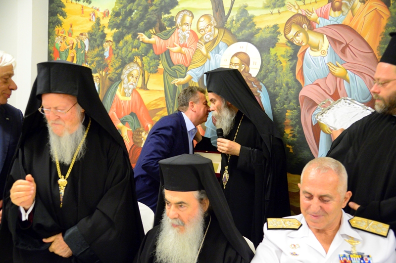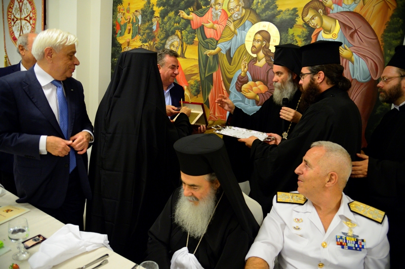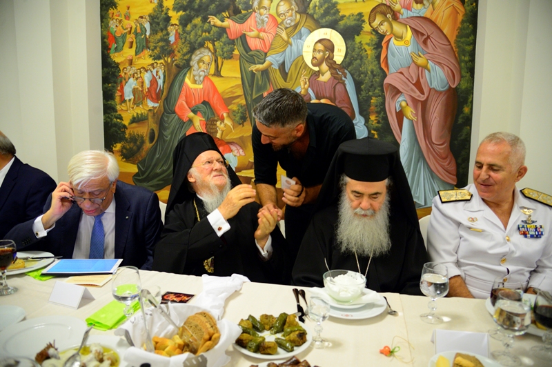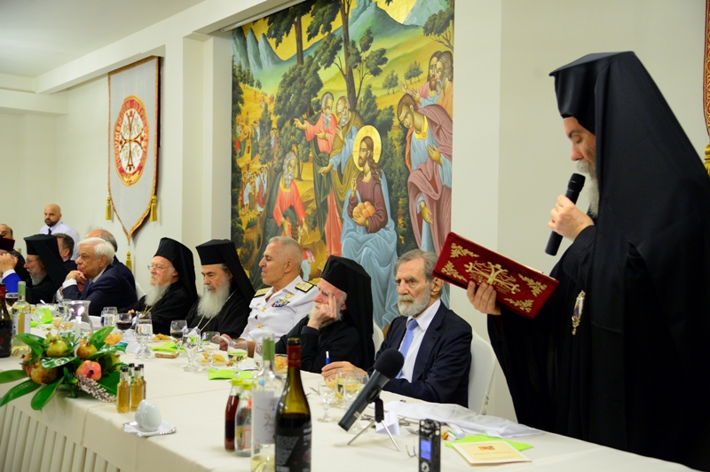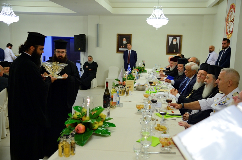 Στους όμορφους και ιδιαίτερα φροντισμένους χώρους του Τσατσαρωνάκειου Πολύκεντρου της Ι.Μητροπόλεως μας παρατέθηκε, εκ μέρους της Μητροπόλεως μας, επίσημο δείπνο τιμής και ευχαριστίας, προς τιμήν του Παναγιωτάτου Οικουμενικού Πατριάρχου κ.κ. Βαρθολομαίου, του εξοχ. Προέδρου της Δημοκρατίας κ. Προκοπίου Παυλοπούλου ως και όλων των εκλεκτών προσκεκλημένων της Μητροπόλεως. Εις το δείπνο αυτό παρακάθισαν, επίσης, ο Μακαριώτατος Πατριάρχης Ιεροσολύμων κ. Θεόφιλος, ο Μακαριώτατος Αρχιεπίσκοπος Κύπρου κ. Χρυσόστομος, εκπρόσωποι του Πατριαρχείου Ρουμανίας και των Αυτοκεφάλων Εκκλησιών Ελλάδος και Πολωνίας, ο Σεβ. Αρχιεπίσκοπος Κρήτης κ. Ειρηναίος και η Ιεραρχία της Εκκλησίας Κρήτης, οι Συνοδείες των Προκαθημένων.
