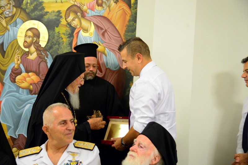 Προσέφερε δε προς όλους τους εκλεκτούς συνδαιτημόνες ανάγλυφη αποτύπωση με την μορφή του Οσίου Νικηφόρου ως και ένα Λεύκωμα, έκδοση της Ι. Μητροπόλεως μας, αφιερωμένο εις τα Αγία και Μεγάλη Σύνοδο, η οποία φιλοξενήθηκε εις τους χώρους της ΟΑΚ τον Ιούνιο του 2016. Ακολούθως χαιρέτισε ο Δήμαρχος Κισάμου κ. Θεόδωρος Σταθάκης, ο οποίος εξέφρασε την χαρά του Δήμου Κισάμου δια το γεγονός των θυρανοιξίων του Ι. Ναού Οσίου Νικηφόρου του Λεπρού ως και της ελεύσεως εις τον Δήμο Κισάμου τόσων υψηλών προσωπικοτήτων. Προσέφερε δε εις τον Πρόεδρο της Δημοκρατίας αναμνηστικό της επισκέψεως του.