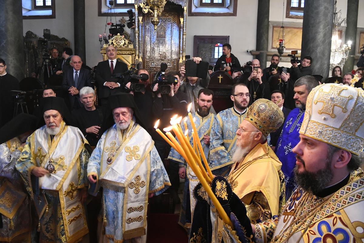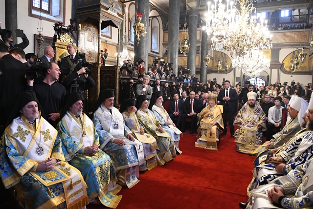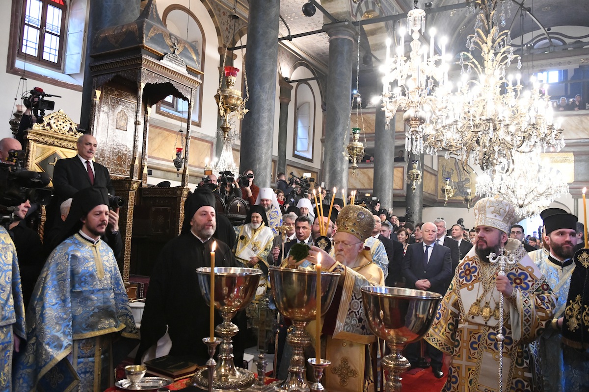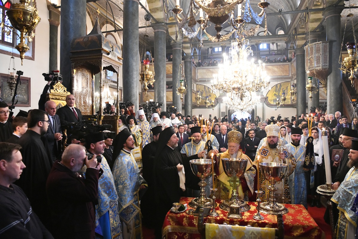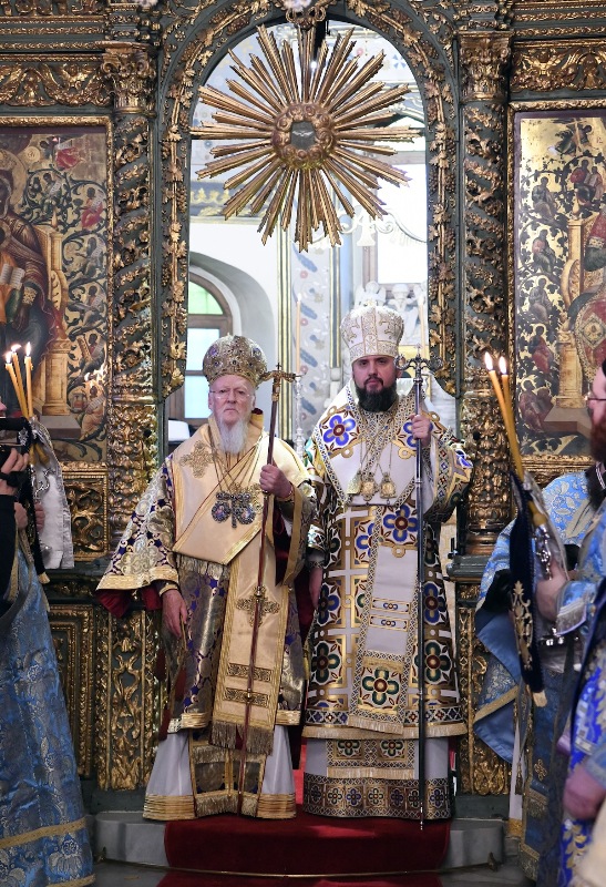 Κατά τη διάρκεια του πανηγυρικού Συλλείτουργου του Οικουμενικού Πατριάρχου με τον Μητροπολίτη Κιέβου και πάσης Ουκρανίας που τελέστηκε για την εορτή των Αγίων Θεοφανείων στον Πατριαρχικό Ναό στο Φανάρι.