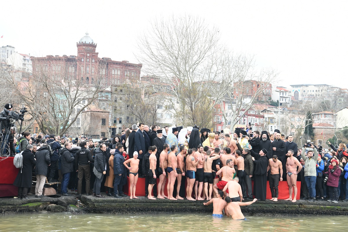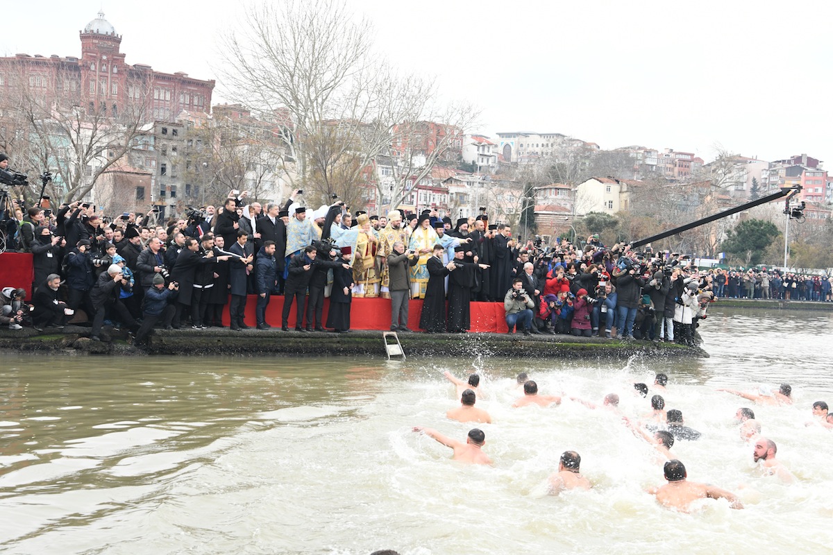 Στα παγωμένα νερά του Κερατίου βούτηξαν περισσότεροι από 30 νέοι από την Πόλη, την Ελλάδα και το εξωτερικό και τον Τίμιο Σταυρό έπιασε ο κ. Μιχάλης Βοσνακίδης, από τη Θεσσαλονίκη, στον οποίο ο Οικουμενικός Πατριάρχης προσέφερε ως ευλογία χρυσό επιστήθιο σταυρό, ενώ ευλόγησε όλους τους υπόλοιπους κολυμβητές και τους προσέφερε σταυρουδάκια.